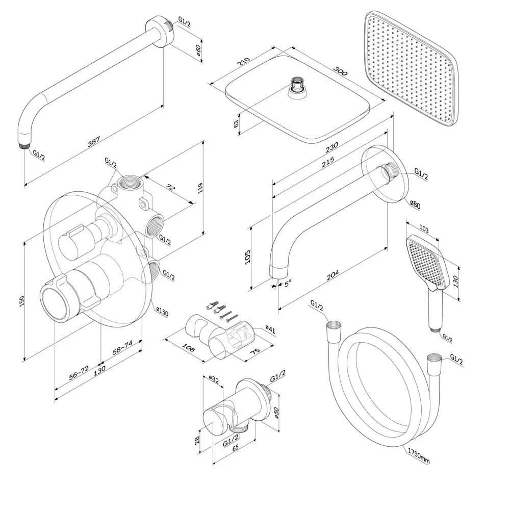 - Переключатель режимов ручного душа: simple switch push/нажимной