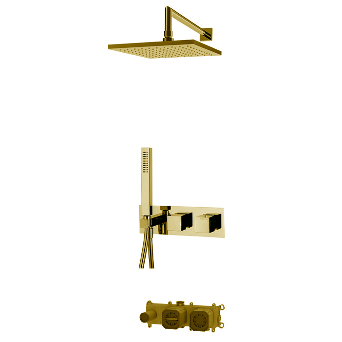 Душевая система Fima Carlo Frattini Sistemi Doccia верхний душ 25х25, с термостатическим смесителем и ручным душем, на 2 источника, золото F3989WX3Q256OR