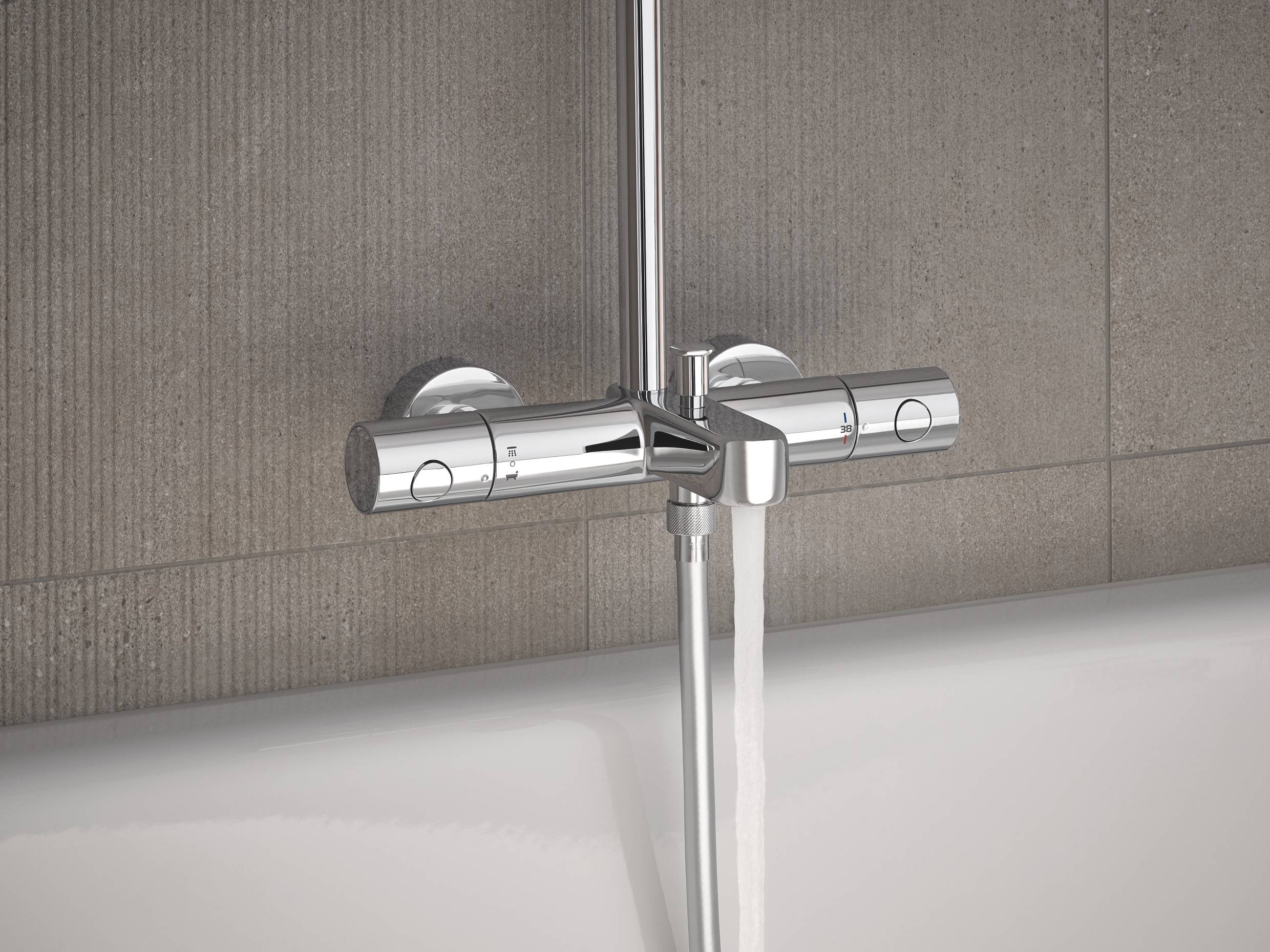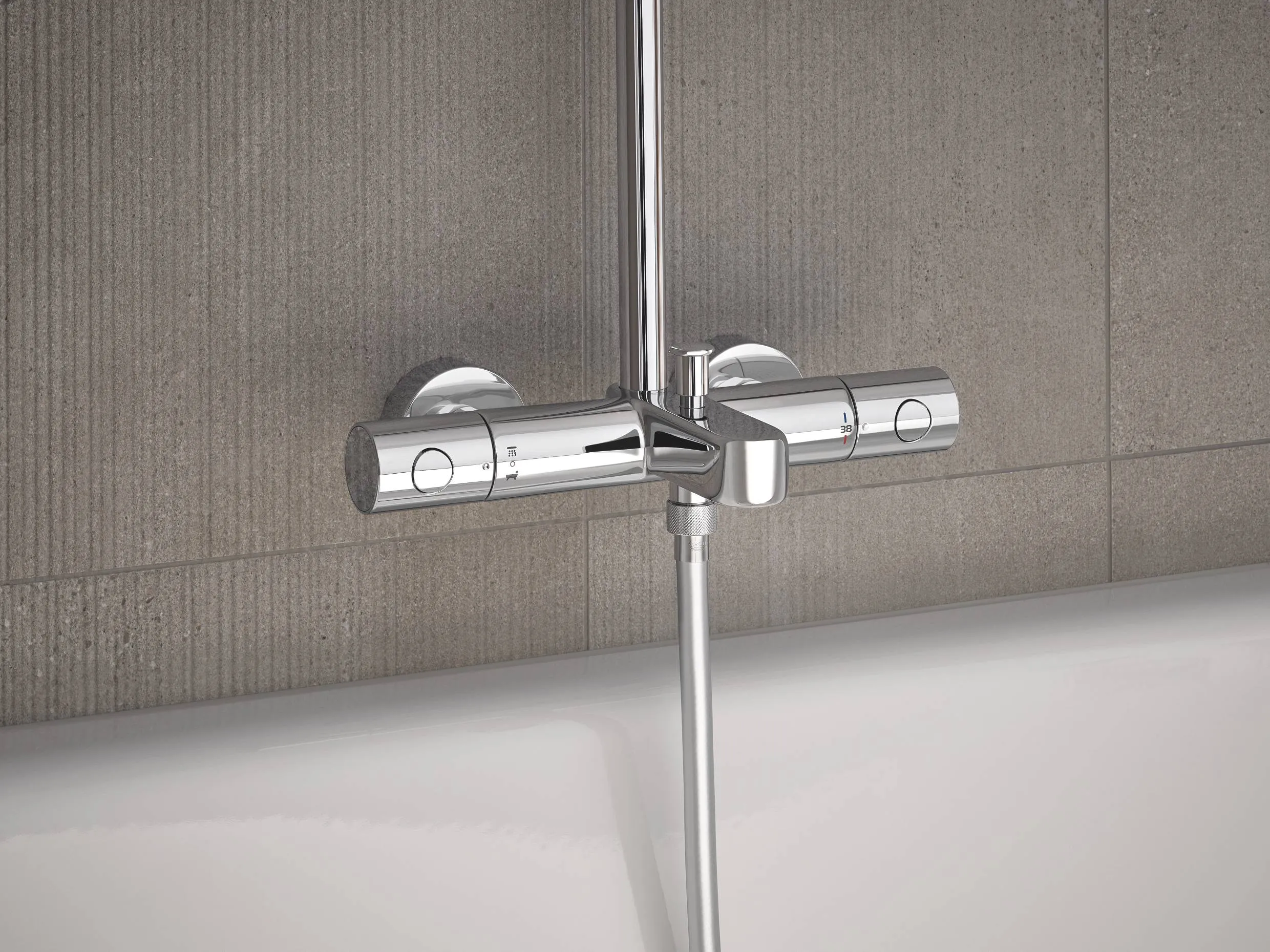 Душевые системы Grohe оснащены технологией TurboStat®, которая мгновенно реагирует на изменения давления воды, поддерживая постоянную температуру в пределах ±1 °C. Это предотвращает резкие перепады температуры, обеспечивая комфорт и безопасность во время принятия душа.
