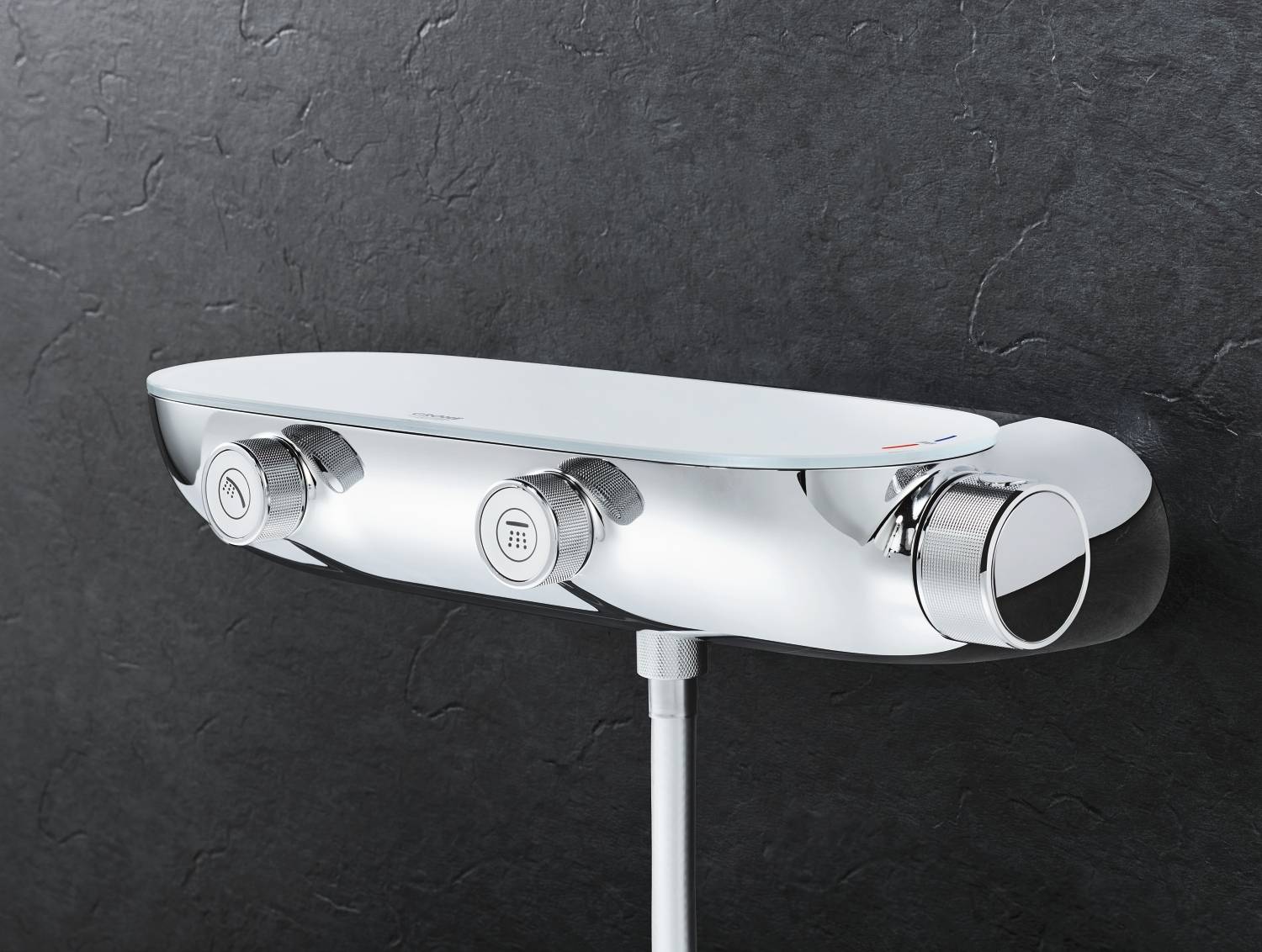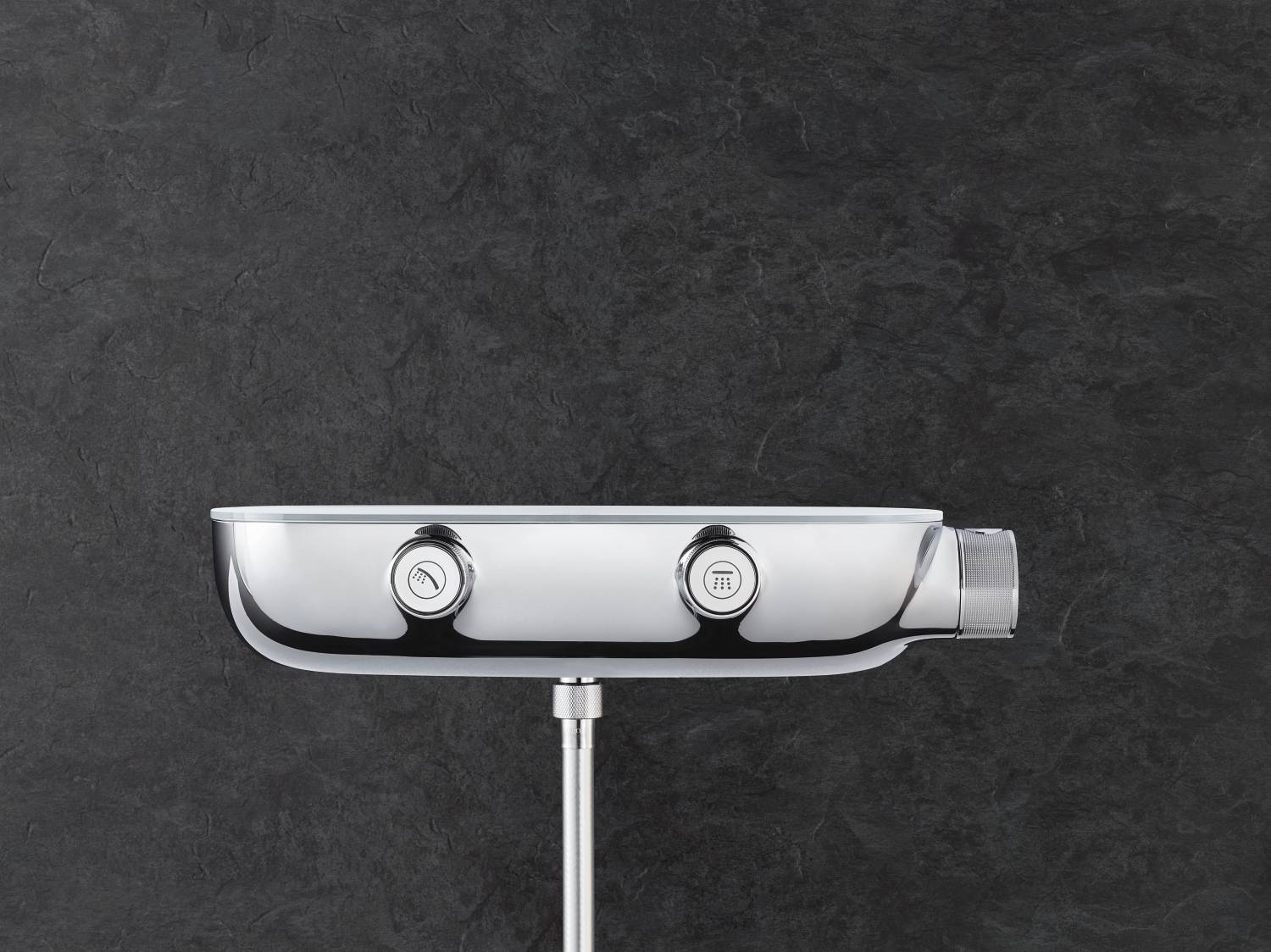 Душевые системы Grohe оснащены технологией TurboStat®, которая мгновенно реагирует на изменения давления воды, поддерживая постоянную температуру в пределах ±1 °C. Это предотвращает резкие перепады температуры, обеспечивая комфорт и безопасность во время принятия душа.