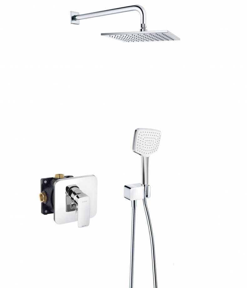 держатель для душа, дивертор, душевая лейка, душевой шланг, кронштейн для верхнего душа, скрытая монтажная часть, смеситель, шланговое подключение