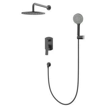 NEMO NM-1352-BGM Душевой набор Настенный смеситель для душа(скрытый монтаж) на 2 потока, со встраиваемой частью Верхний душ (латунь) 25 см с держателем из стены (латунь), ручной душ АБС, держатель для душа АБС, выпуск для ручного душа латунь Шланг 1,5 м BRUSH GUN METAL (БРАШИРОВАННЫЙ АНТРАЦИТ)