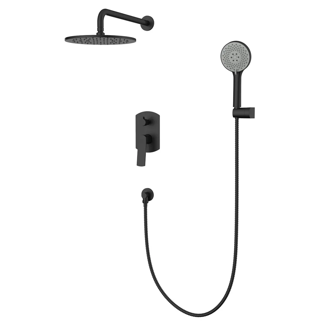 NEMO NM-1352-MB Душевой набор Настенный смеситель для душа(скрытый монтаж) на 2 потока, со встраиваемой частью Верхний душ (латунь) 25 см с держателем из стены (латунь), ручной душ АБС, держатель для душа АБС, выпуск для ручного душа латунь Шланг 1,5 м MATTE BLACK (ЧЕРНЫЙ МАТОВЫЙ)