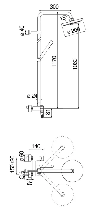 UP94130/30BM UP душевая система, верхний душ 20 см, матовый черный