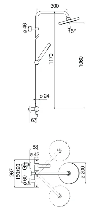 VE125030/30CR VELIS термостатическая душевая система, верхний душ 20 см
