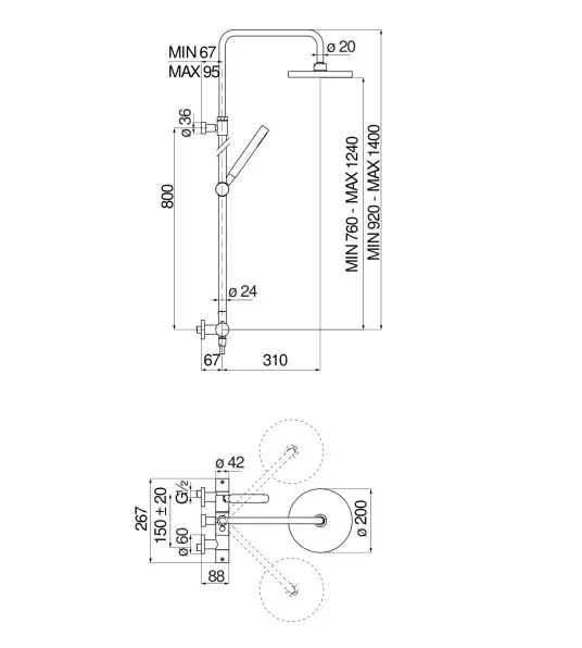 - Размер верхнего душа, мм: 200.0