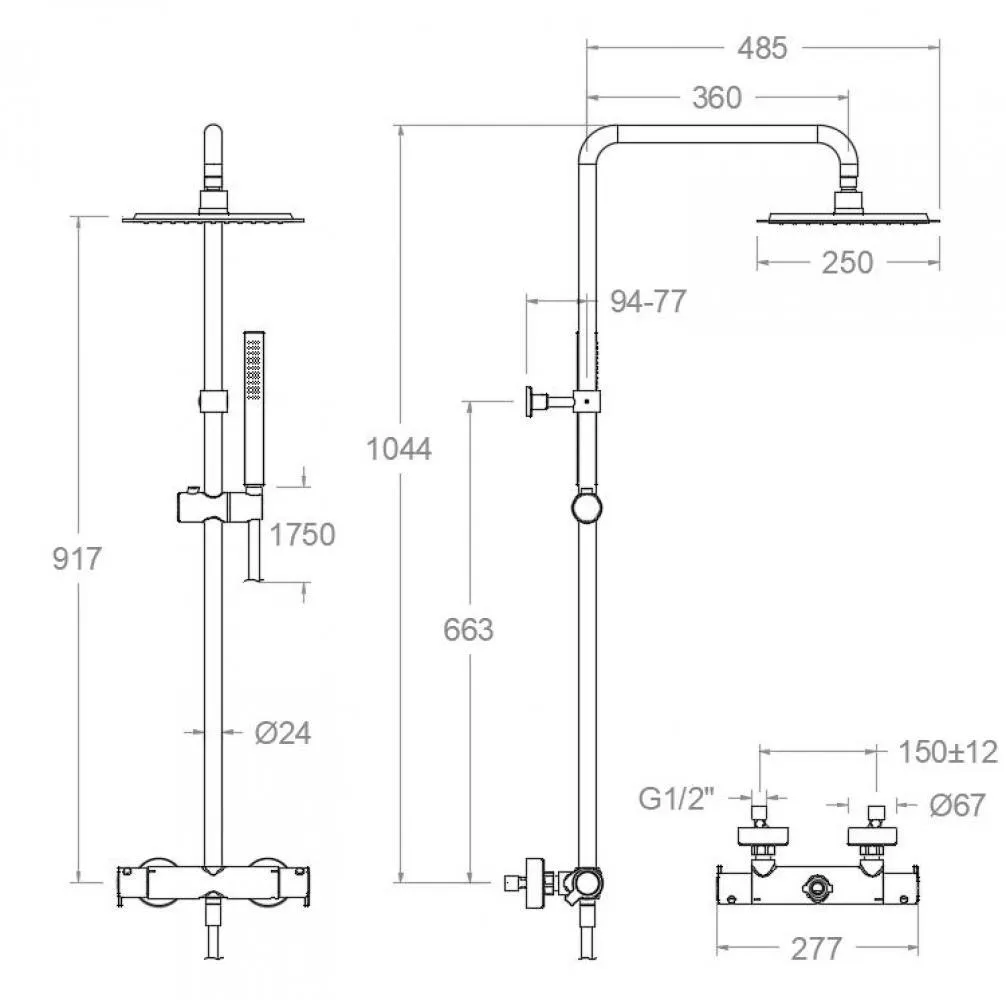 Душевая система Ramonsoler Blautherm с термостатом и тропическим душем для ванны 944802RK250