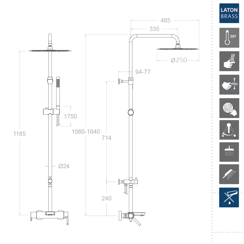 Душевая система Ramonsoler Drako термостатическая с изливом и с регулировкой высоты 335602RM250