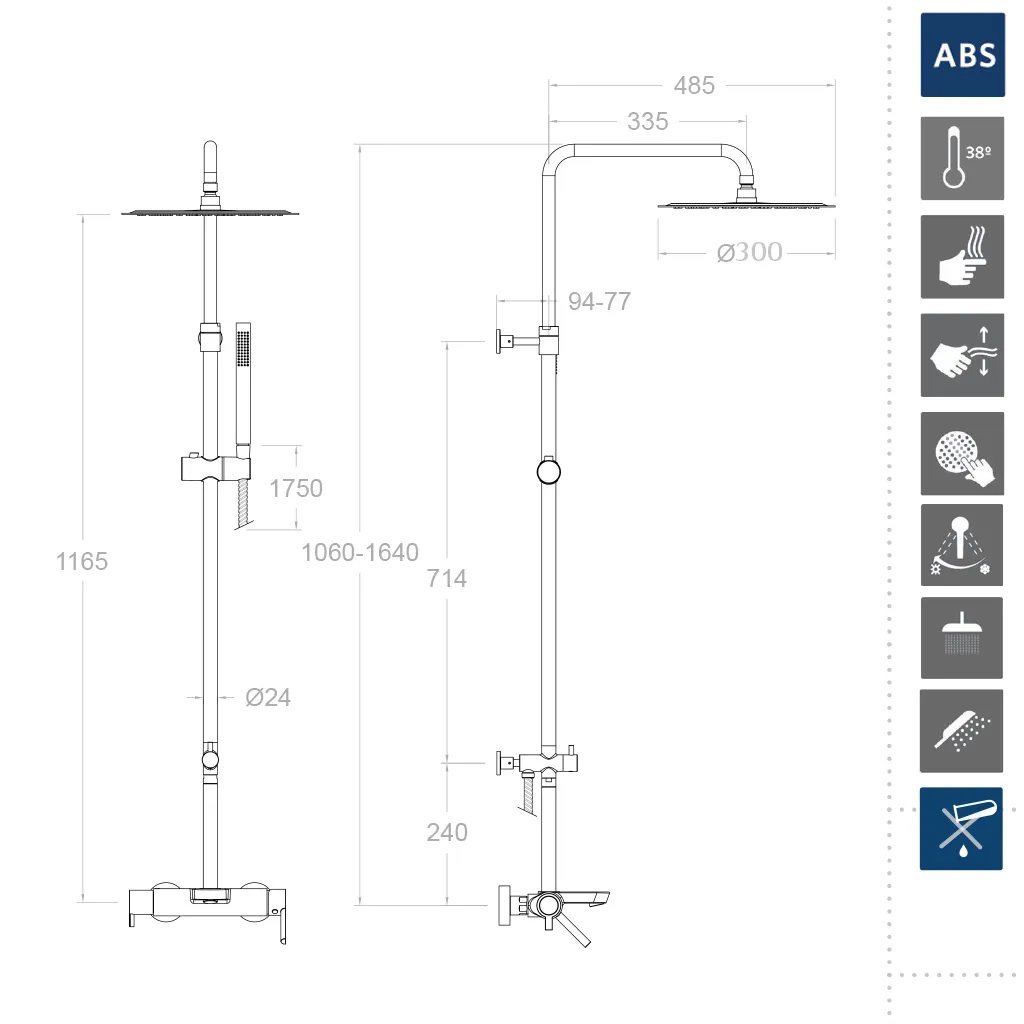 Душевая система Ramonsoler Drako термостатическая с изливом и с регулировкой высоты 335602RP300