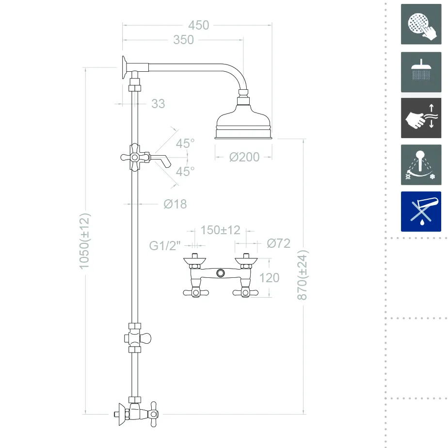 Представляем душевую систему Ramonsoler Gaudi без излива с двойным положением по высоте 3158CG — это ваш шаг к созданию стильного и комфортного пространства в ванной комнате. Этот продукт от известного бренда Ramonsoler из коллекции Gaudi сочетает в себе традиции и современность, подчеркивая изысканность классического и винтажного дизайна.