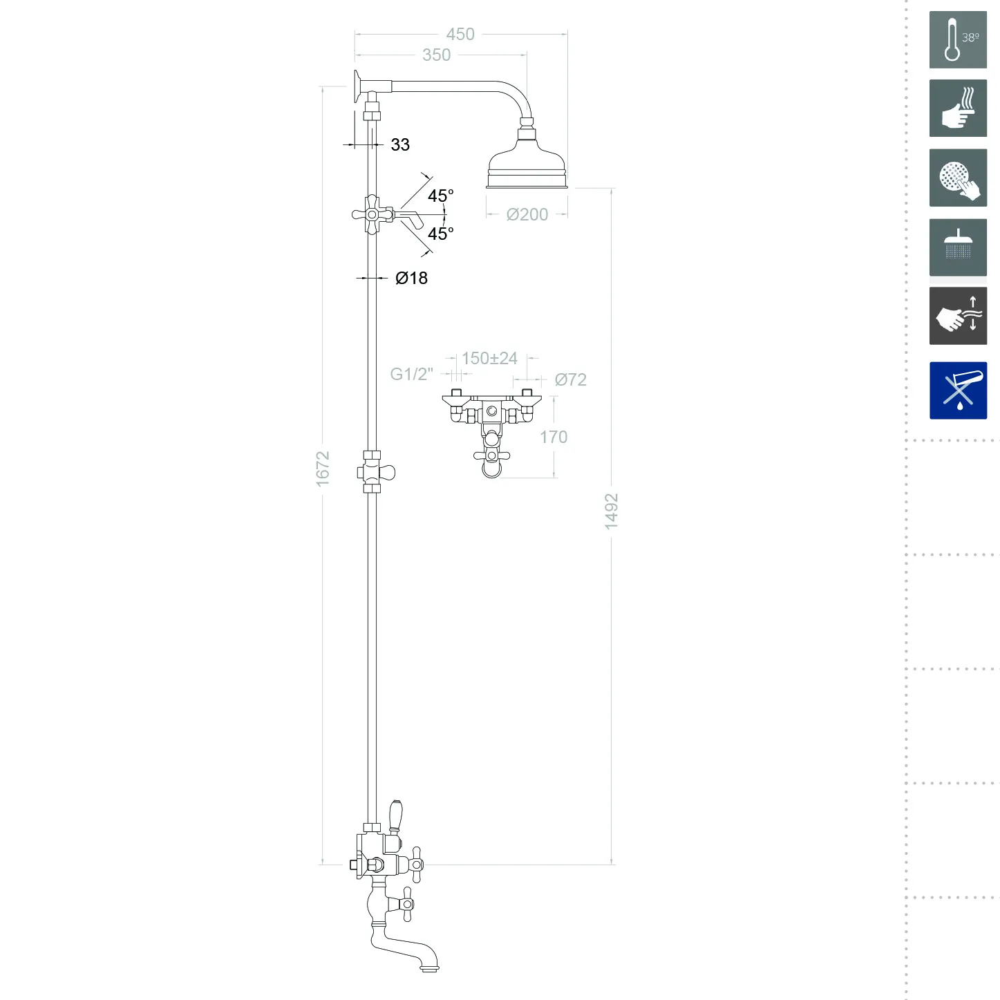 Погрузитесь в мир элегантности и функциональности с душевой системой Ramonsoler Gaudi термостатической с изливом без регулировки высоты, модель 3068G. Эта душа воплощает в себе утонченное сочетание классических и винтажных элементов, открывая новые грани комфорта и стиля в вашей ванной комнате.