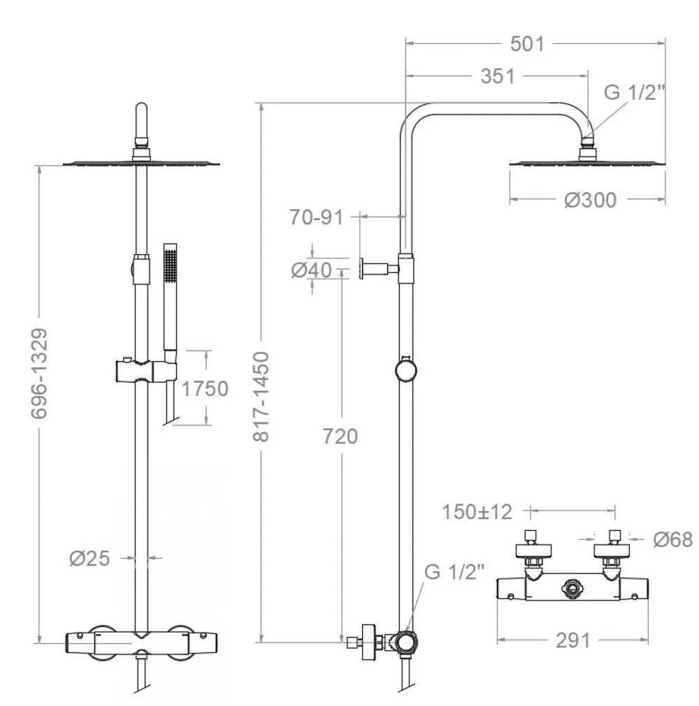 Душевая система Ramonsoler Tzar термостатическая без излива с регулировкой высоты хром 345412RM300
