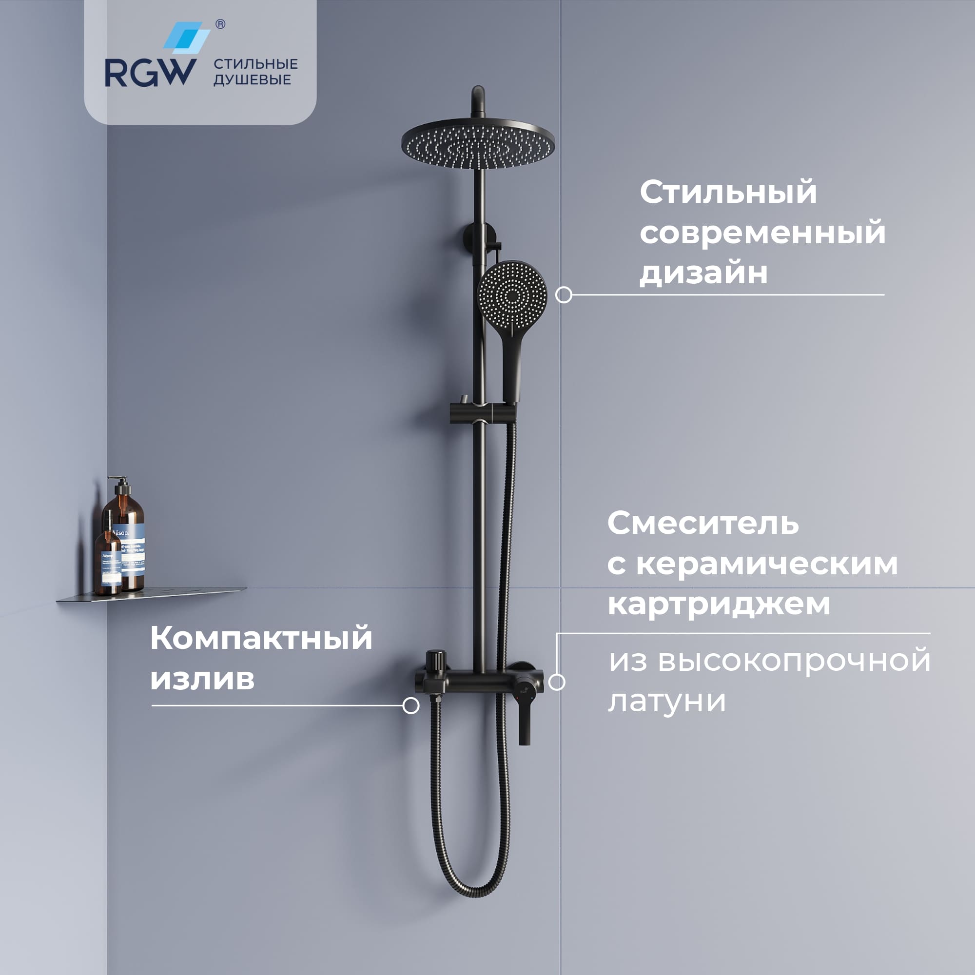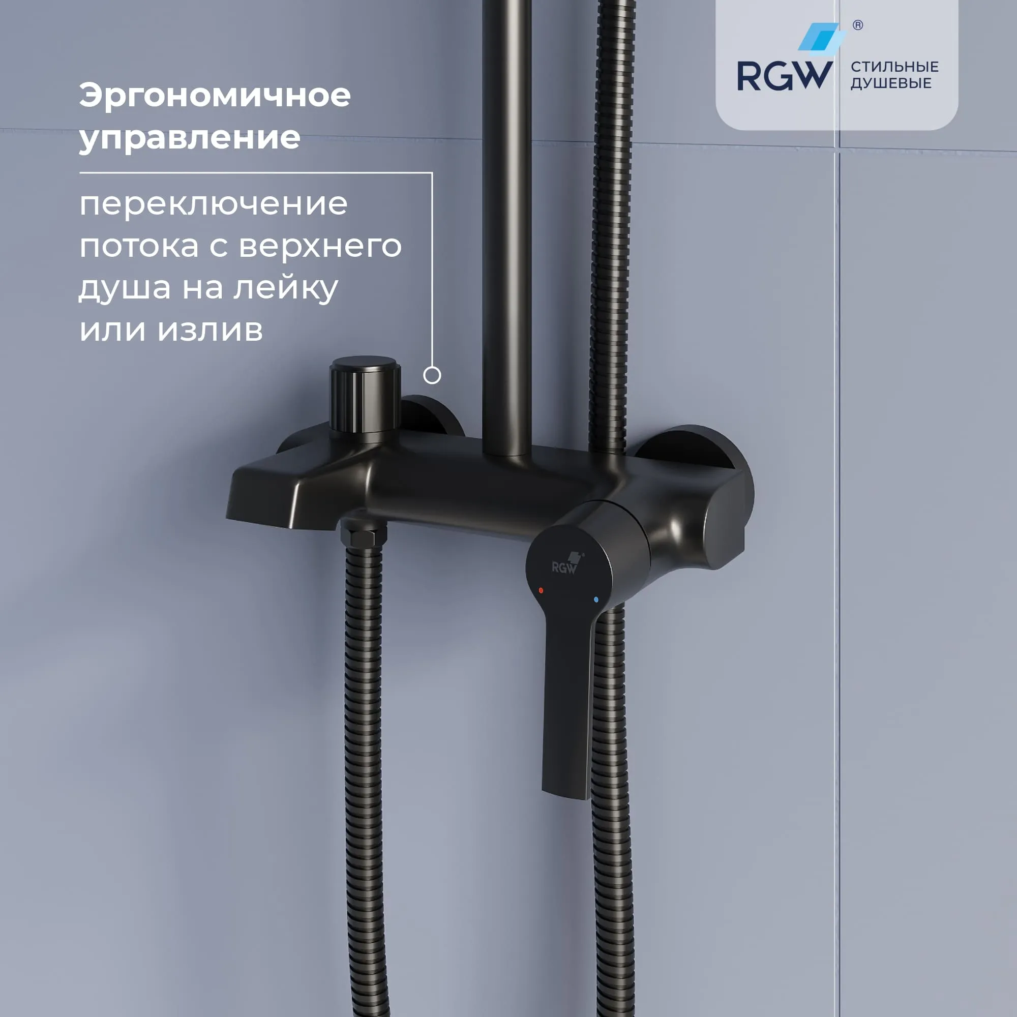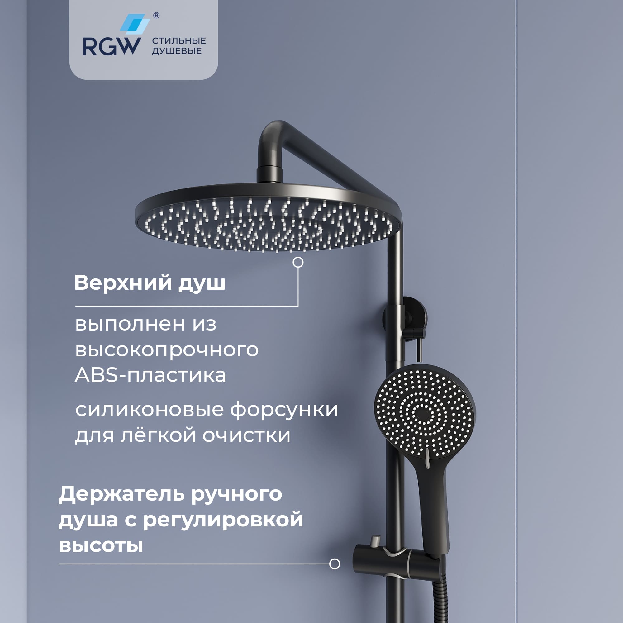 - Стальная штанга с регулировкой высоты головного душа.