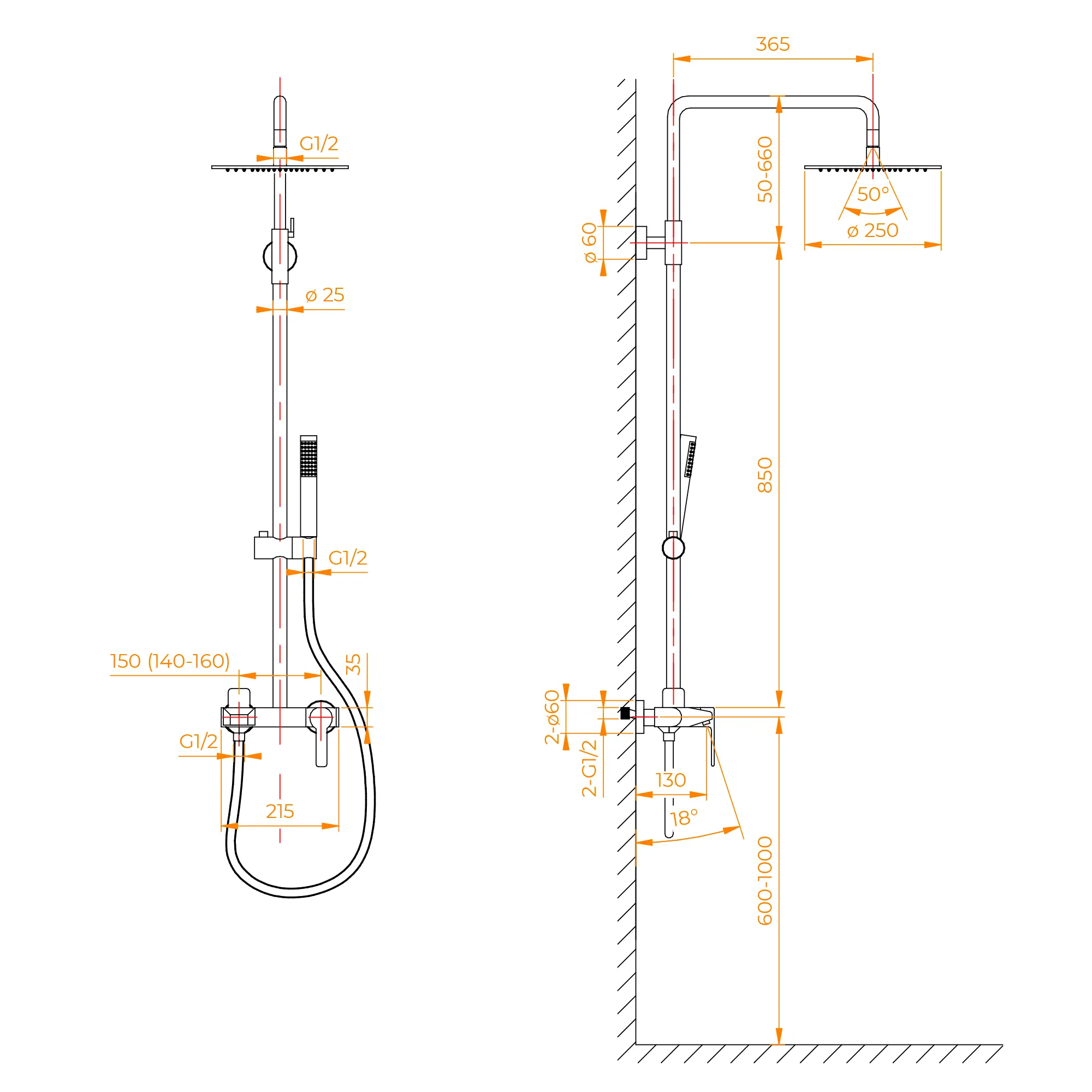 - Головной душ из нержавеющей стали оснащён шарнирным креплением, что позволяет выбрать необходимый угол направления воды