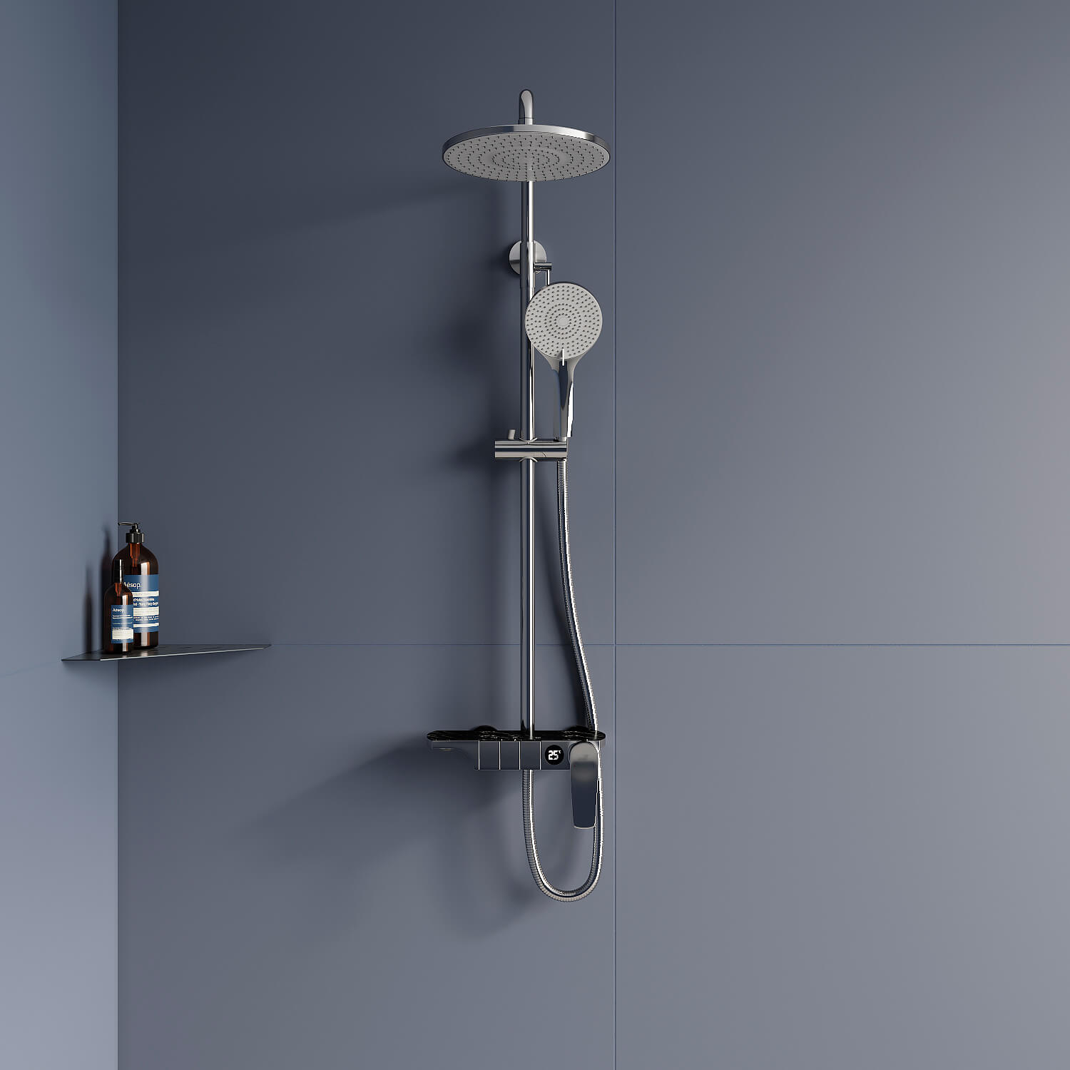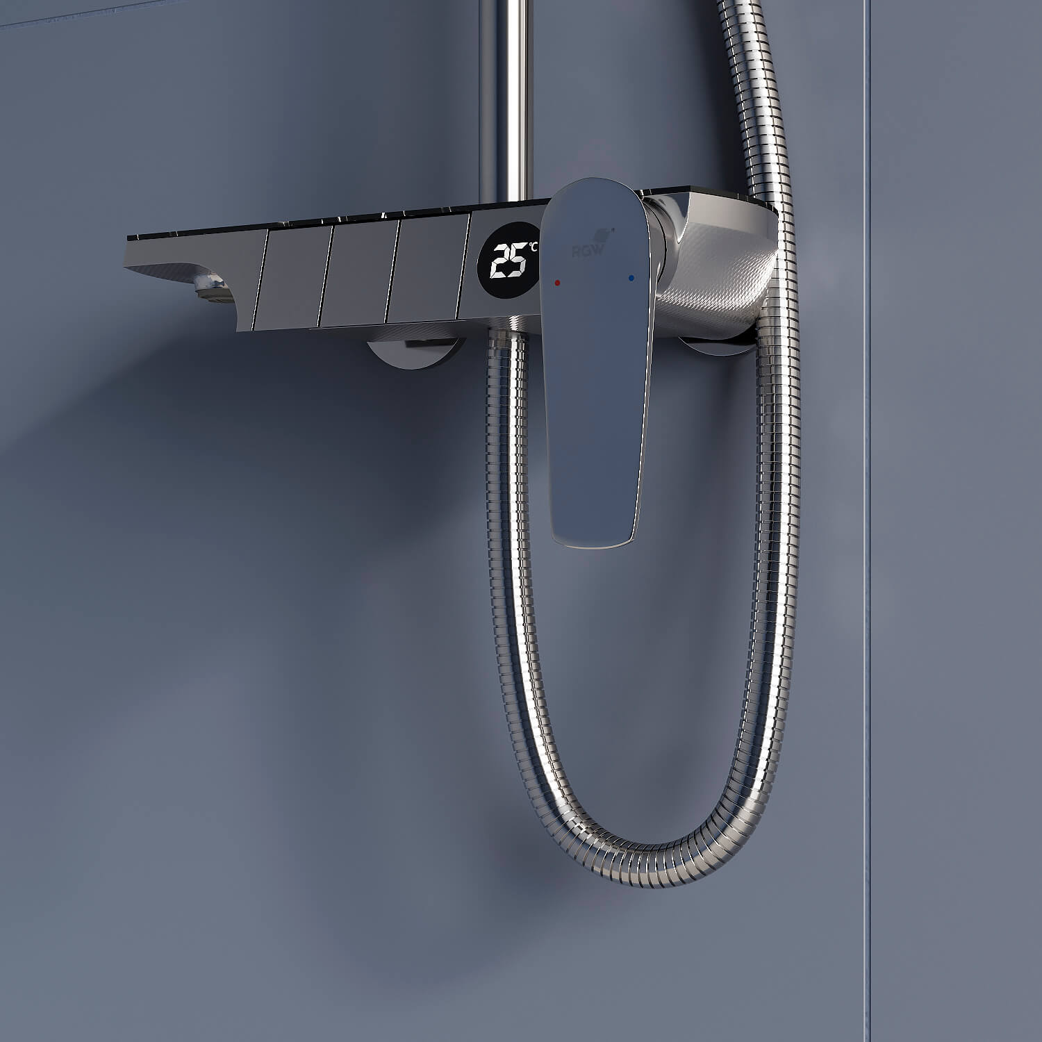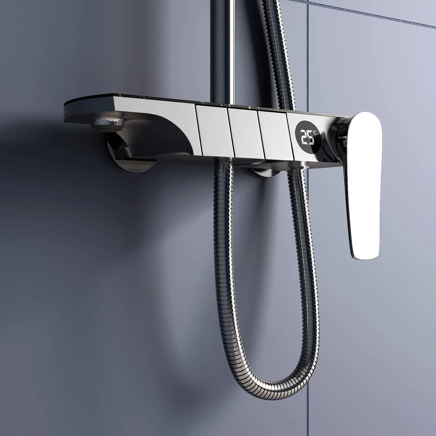 Стильный дизайн корпуса выполнен в цвете хром, модель идеально сочетается с современной сантехникой и безупречно впишется в ваше душевое пространство!