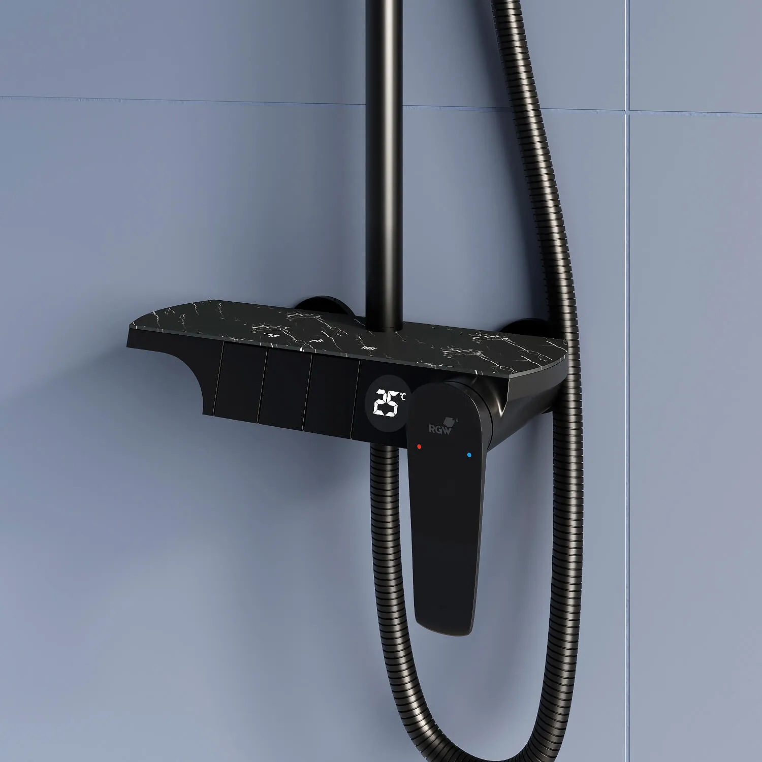 Стильный дизайн корпуса выполнен в чёрном цвете, модель идеально сочетается с современной сантехникой и безупречно впишется в ваше душевое пространство!