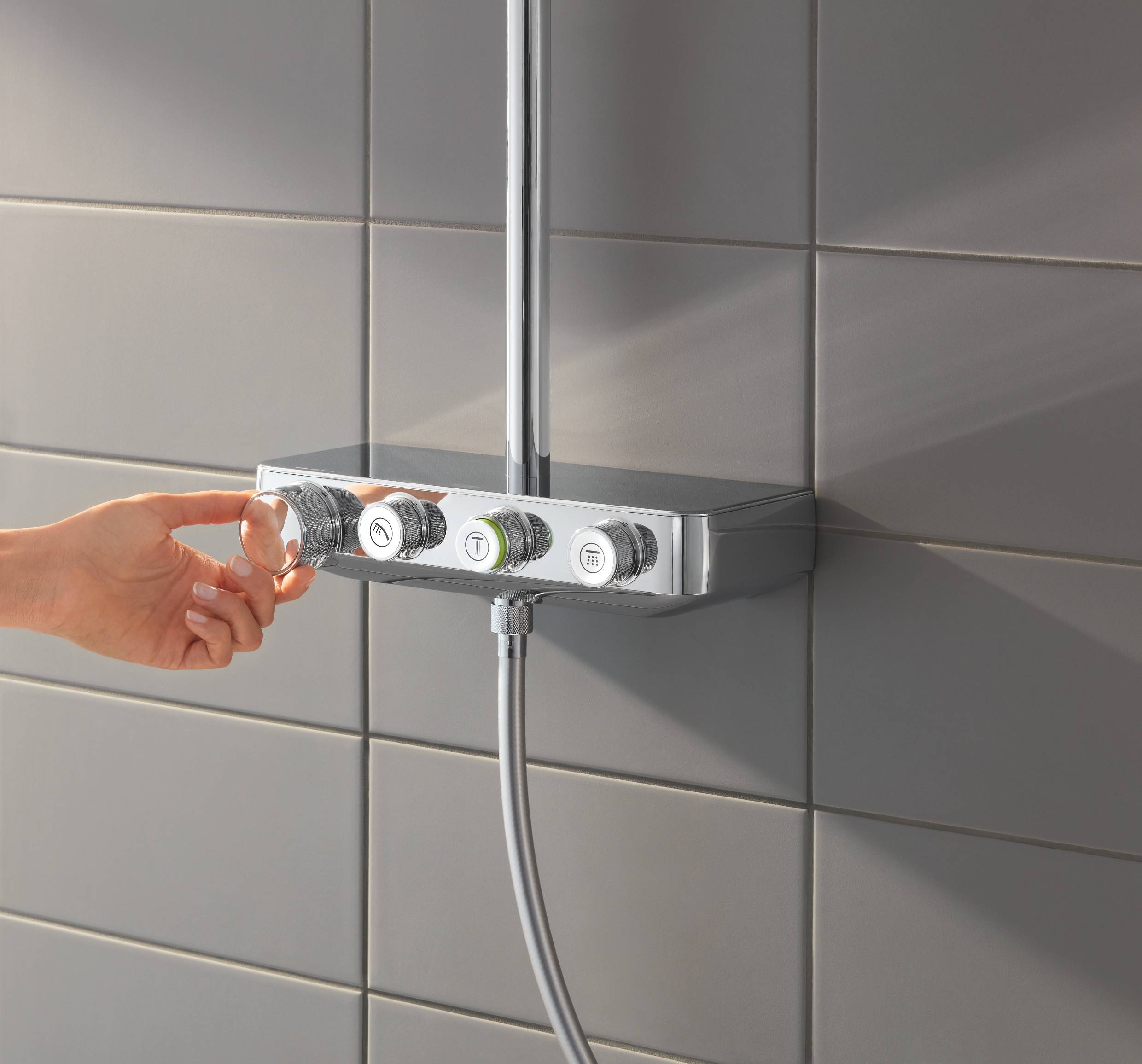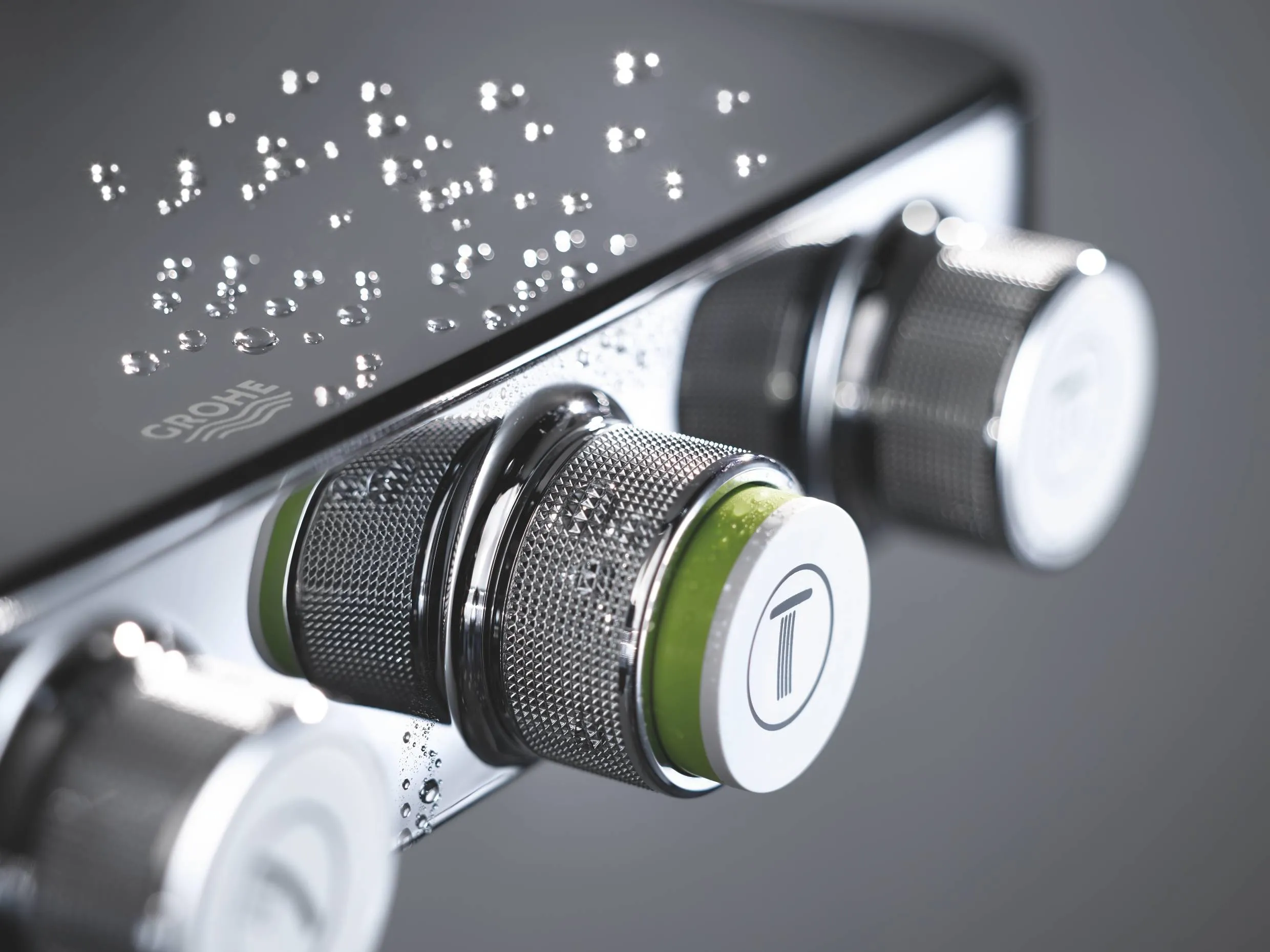 Душевые системы Grohe оснащены технологией TurboStat®, которая мгновенно реагирует на изменения давления воды, поддерживая постоянную температуру в пределах ±1 °C. Это предотвращает резкие перепады температуры, обеспечивая комфорт и безопасность во время принятия душа.