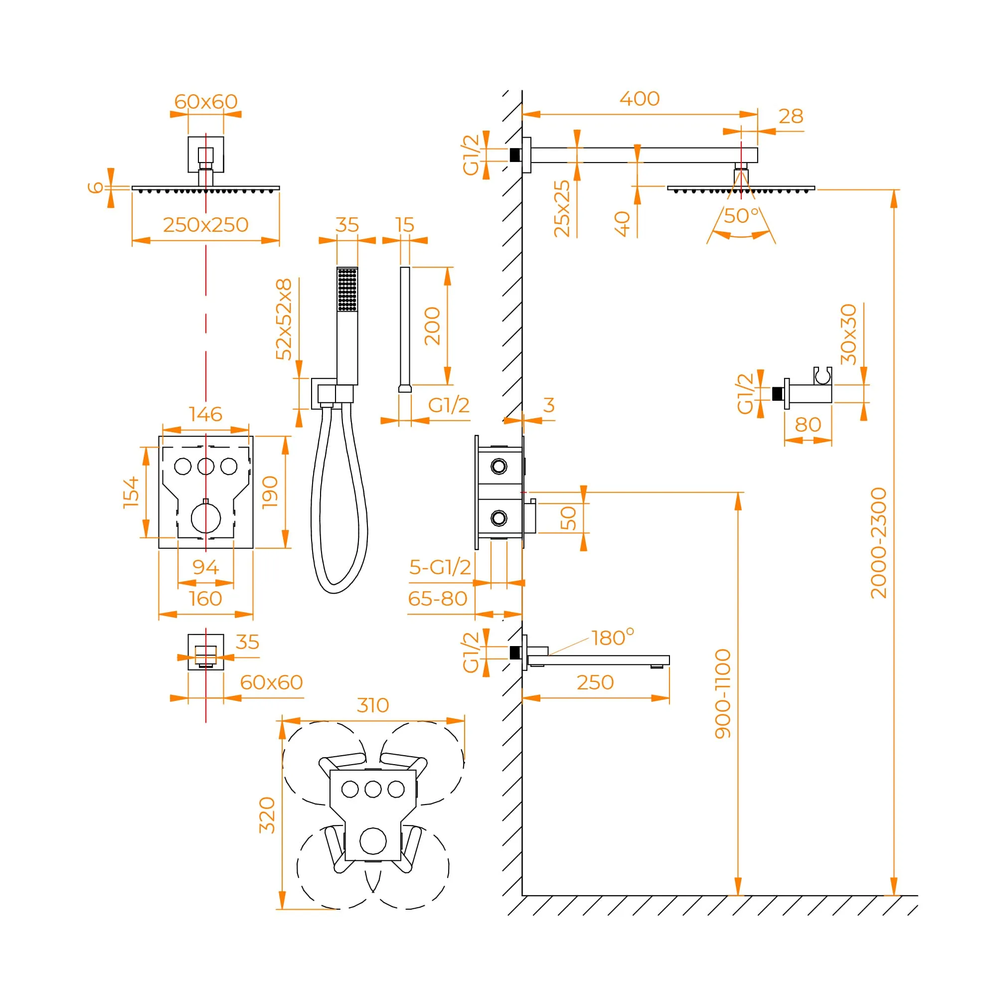 - Шланг ручного душа – нержавеющая сталь, длина 1.5 м