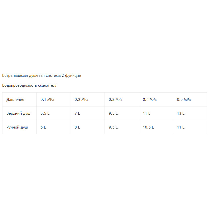 Встраиваемая душевая система выполнена из латуни и нержавеющей стали, что придаёт изделию повышенную устойчивость к образованию коррозии и ржавчины, а внутренний элемент оснащён керамическими пластинами. За счет применения передовых технологий душевые системы рассчитаны на ресурс эксплуатации не менее 10 лет.