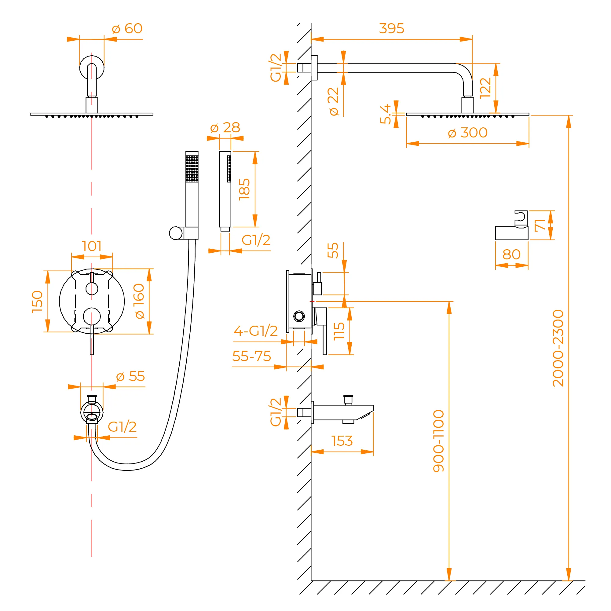 Встраиваемая душевая система выполнена из латуни и нержавеющей стали, что придаёт изделию повышенную устойчивость к образованию коррозии и ржавчины, а внутренний элемент оснащён керамическими пластинами. За счет применения передовых технологий душевые системы рассчитаны на ресурс эксплуатации не менее 10 лет.