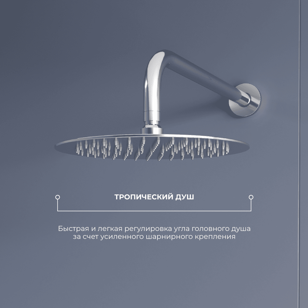 Душевые системы RGW с верхним душем гармонично вписываются в интерьер любой ванной комнаты за счет современного дизайна и продуманной эргономики.
