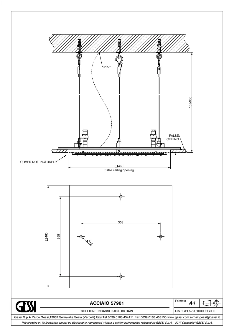 Душевая система встраиваемая потолочная Gessi Minimali 57901.238 выполнена в цвете зеркальная сталь.