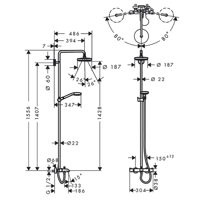 - состоит из: верхний душ, ручной душ, термостат для ванны, штанга для душа, держатель для душа
