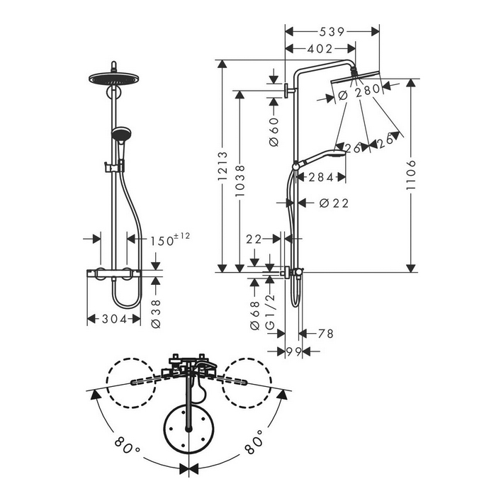 Душевая стойка hansgrohe Croma Select S 280 26890670 1 режим струи черный матовый