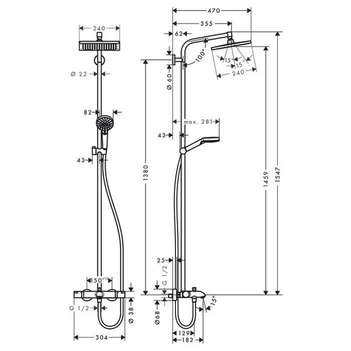 Hansgrohe Crometta E 240 1jet Showerpipe Душевая стойка для ванны, хром