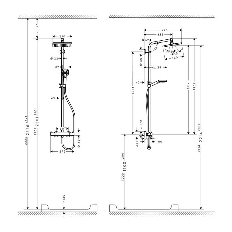 Душевая система Hansgrohe Crometta E 240 1jet Showerpipe EcoSmart 27281000