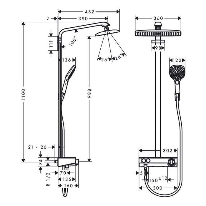 - Верхний душ 360 1jet с потолочным подсоединением (# 27381000)