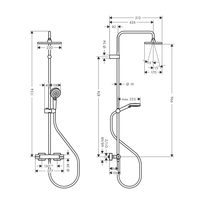 - состоит из: верхний душ, ручной душ, термостат для душа, штанга для душа, держатель для душа