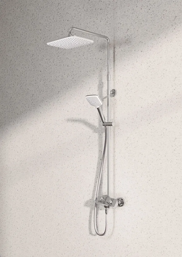 держатель настенный, душевая лейка, душевой шланг, переключатель потоков, смеситель, эксцентрики