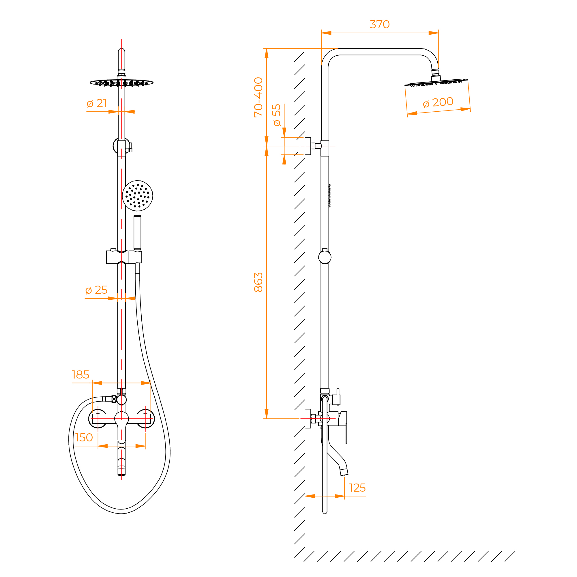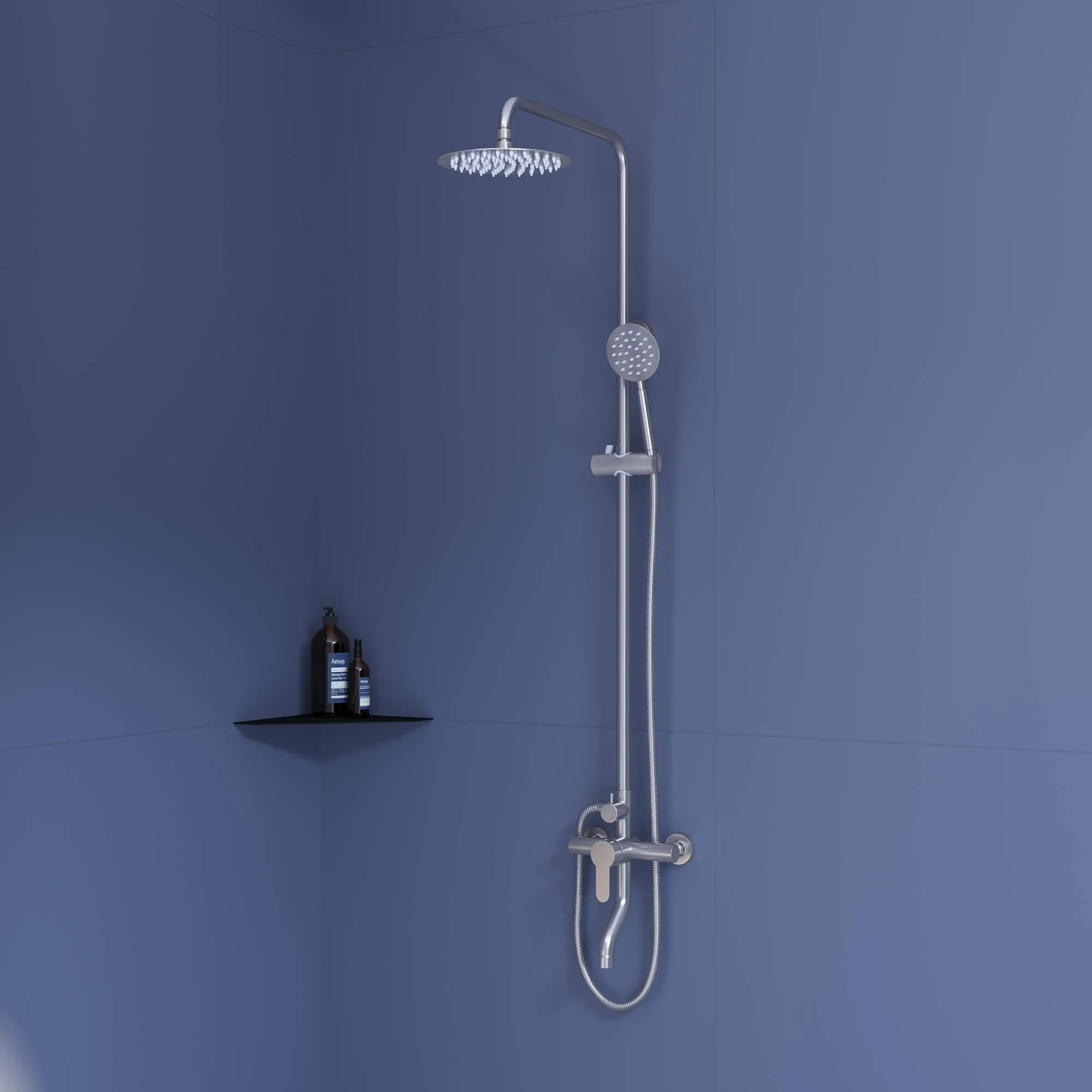Головной душ выполнен из нержавеющей стали AISI 304 оснащён со шарнирным креплением, что позволяет выбрать необходимый угол направления воды;