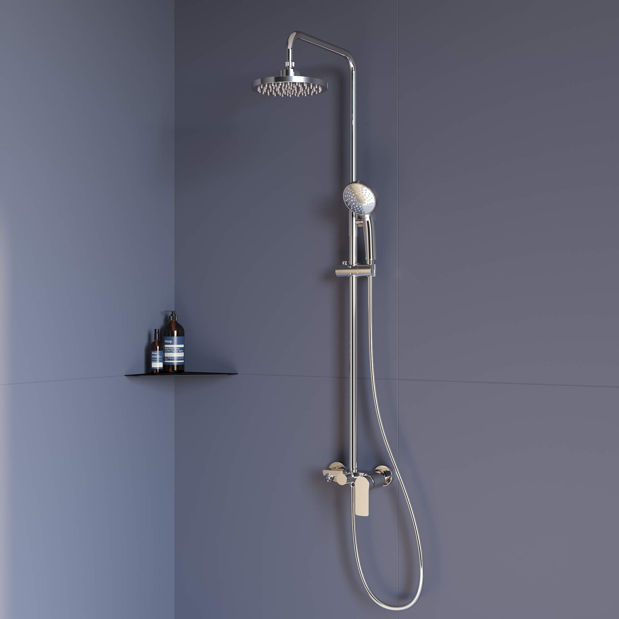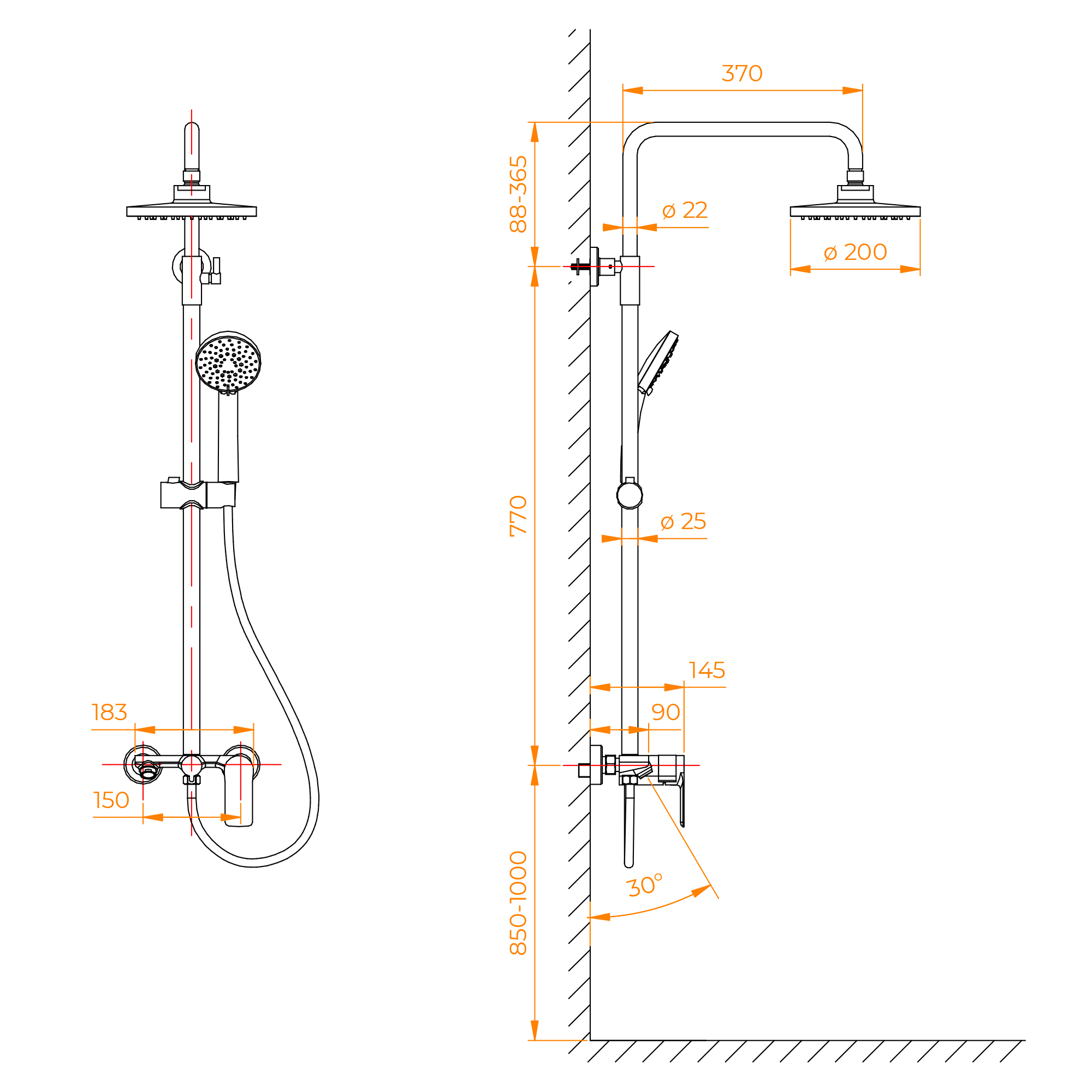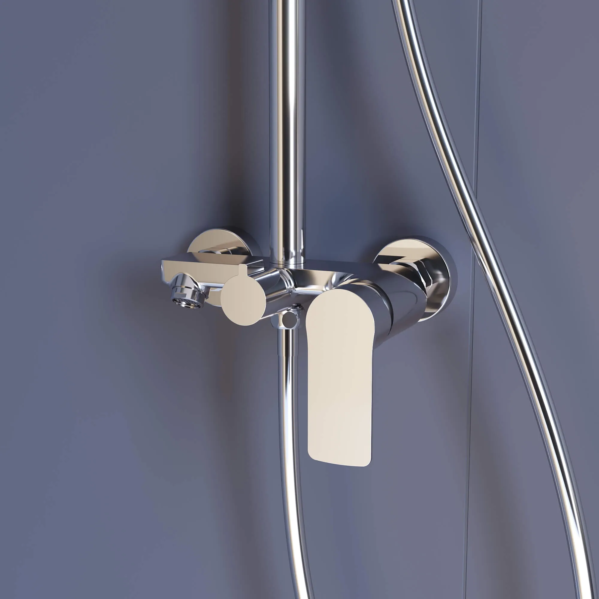 Головной душ из высокопрочного ABS-пластика оснащён со шарнирным креплением, что позволяет выбрать необходимый угол направления воды;