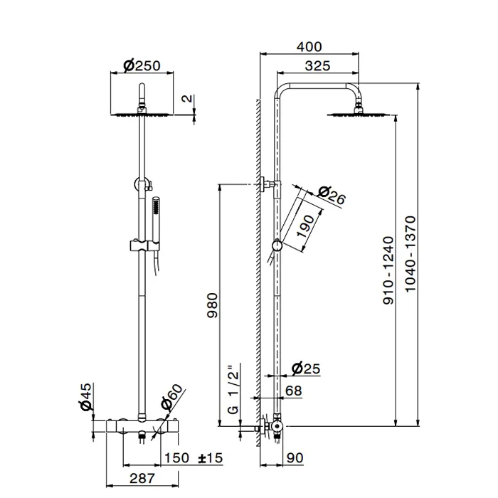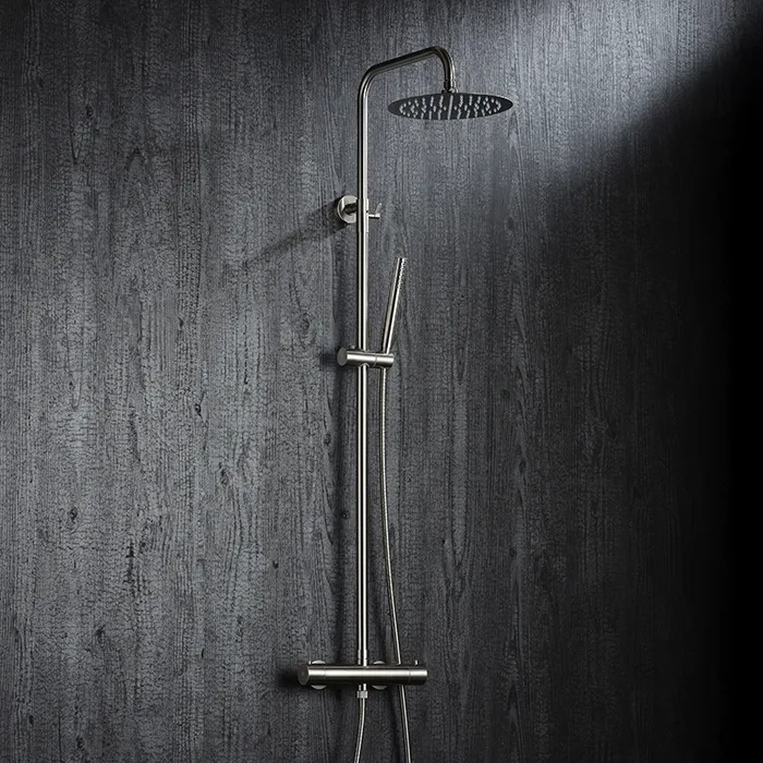 Душевая стойка с термо смес. Newform X-steel 316 верхний душ 250, ручной душ, шланг 150 см, INOX 69650X.50.050