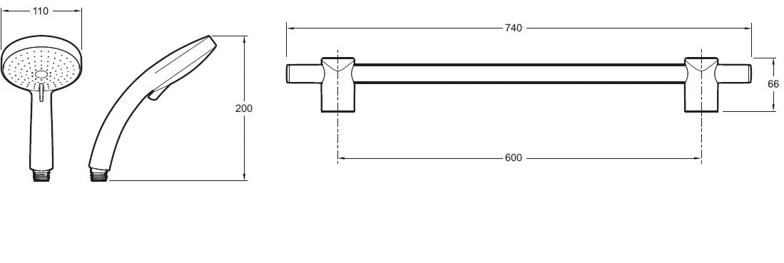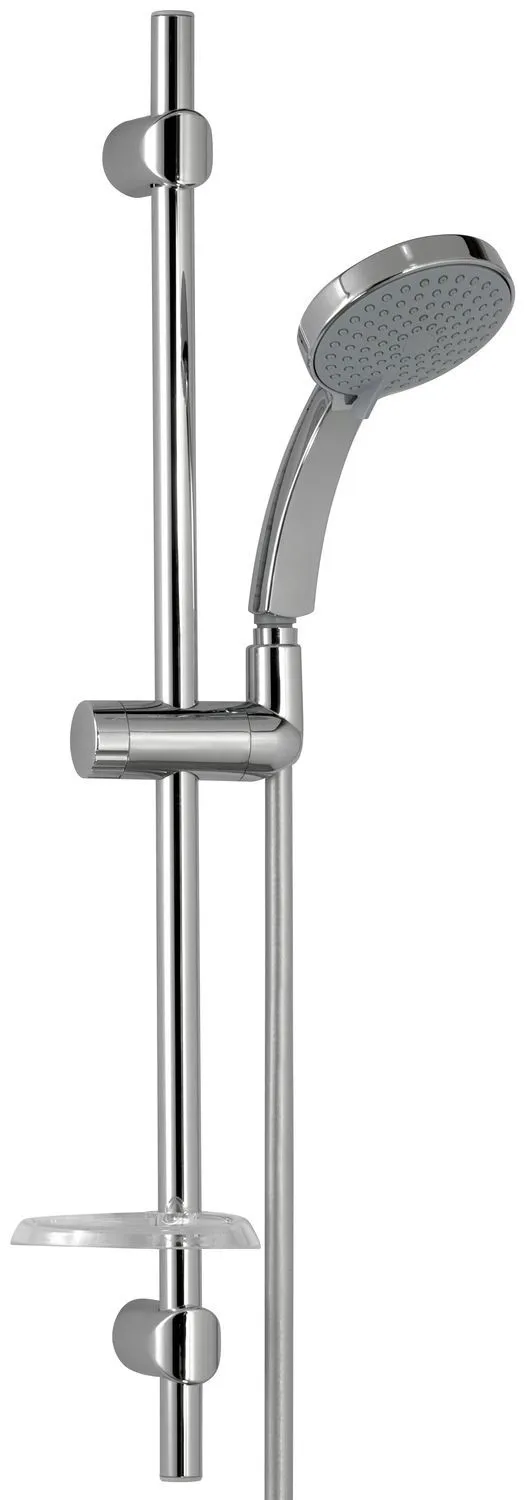Душевой комплект с металлической штангой (0,60 м), мыльницей, гибким нескручивающимся шлангом (1,60 м) и 5-ти режимным ручным душем диаметром 110 мм с антиизвестковым покрытием.