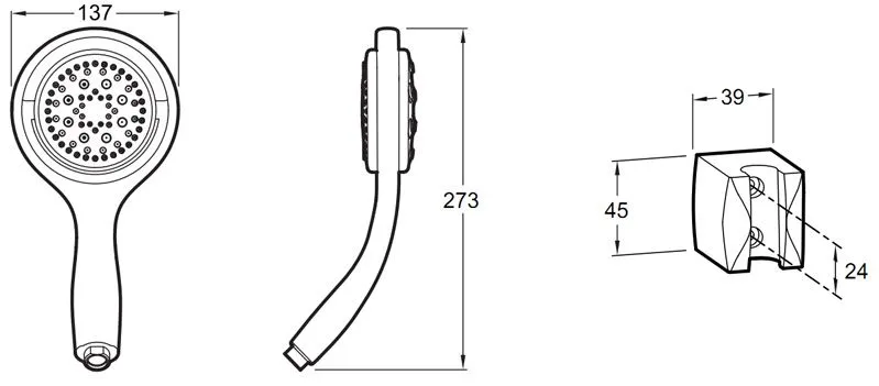 Душевой комплект с настенным держателем, гибким нескручивающимся шлангом (1,50 м) и 4-х режимным вращающимся ручным душем.