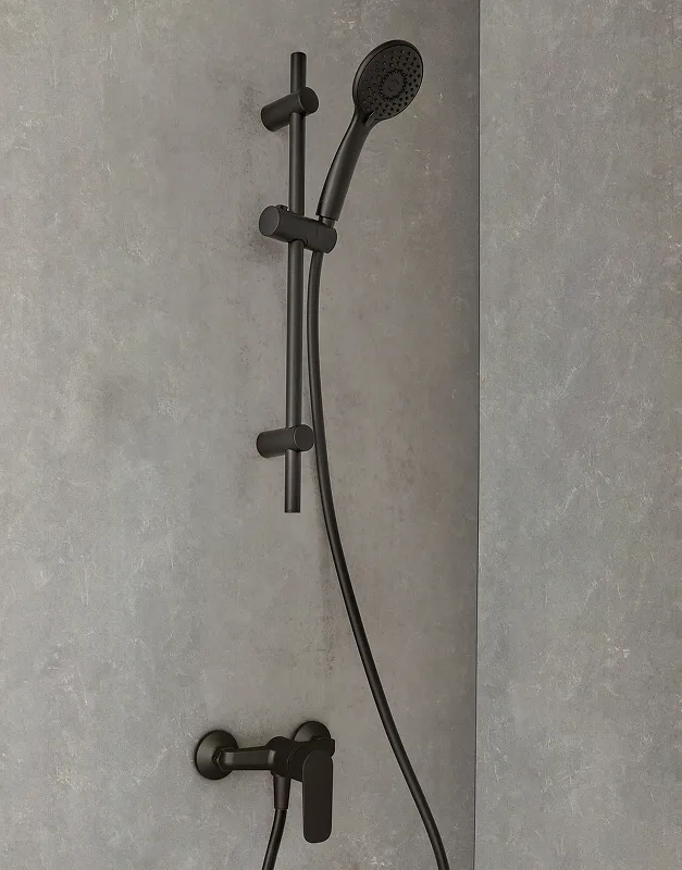 Душевой гарнитур Jacob Delafon Oscar E29848-BL. Высота: 60,5 см. Ширина: 27 см. Длина: 20.5 см. Круглая лейка диаметром 10,5 см. Пластиковый шланг длиной 160 см. Места соединений шланга с лейкой и смесителем оснащены поворотным конусом или специальными подшипниками, которые препятствуют перекручиванию шланга. С системой против известковых отложений. С легким очищением от налета.