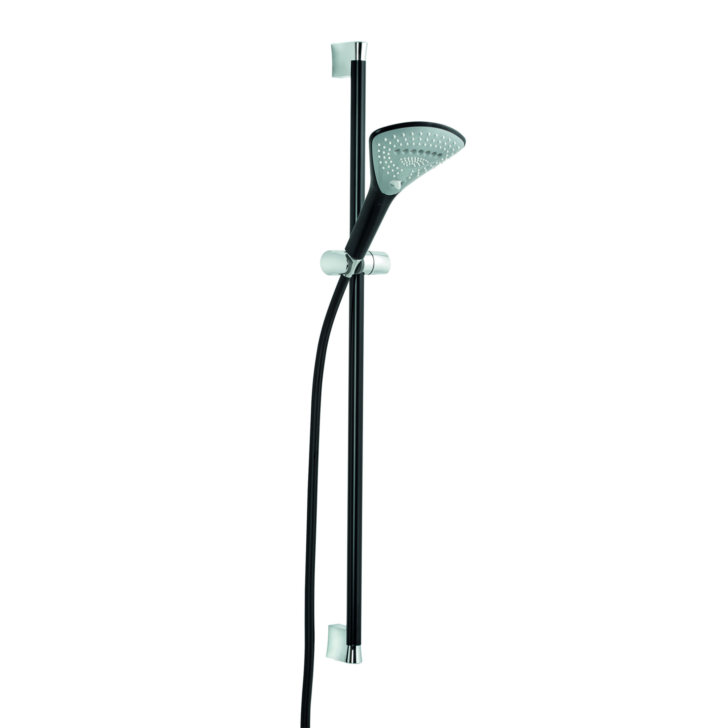 KLUDI FIZZ Душевой гарнитур 3S длина штанги 900 мм, чёрный матовый/хром, арт. 6774087-00 Коллекция KLUDI FIZZ - это уникальная программа для душа, выполненная в современном креативном стиле. Сломайте стереотипы в представлении об оформлении ванной комнаты и вместо круглой или квадратной душевой