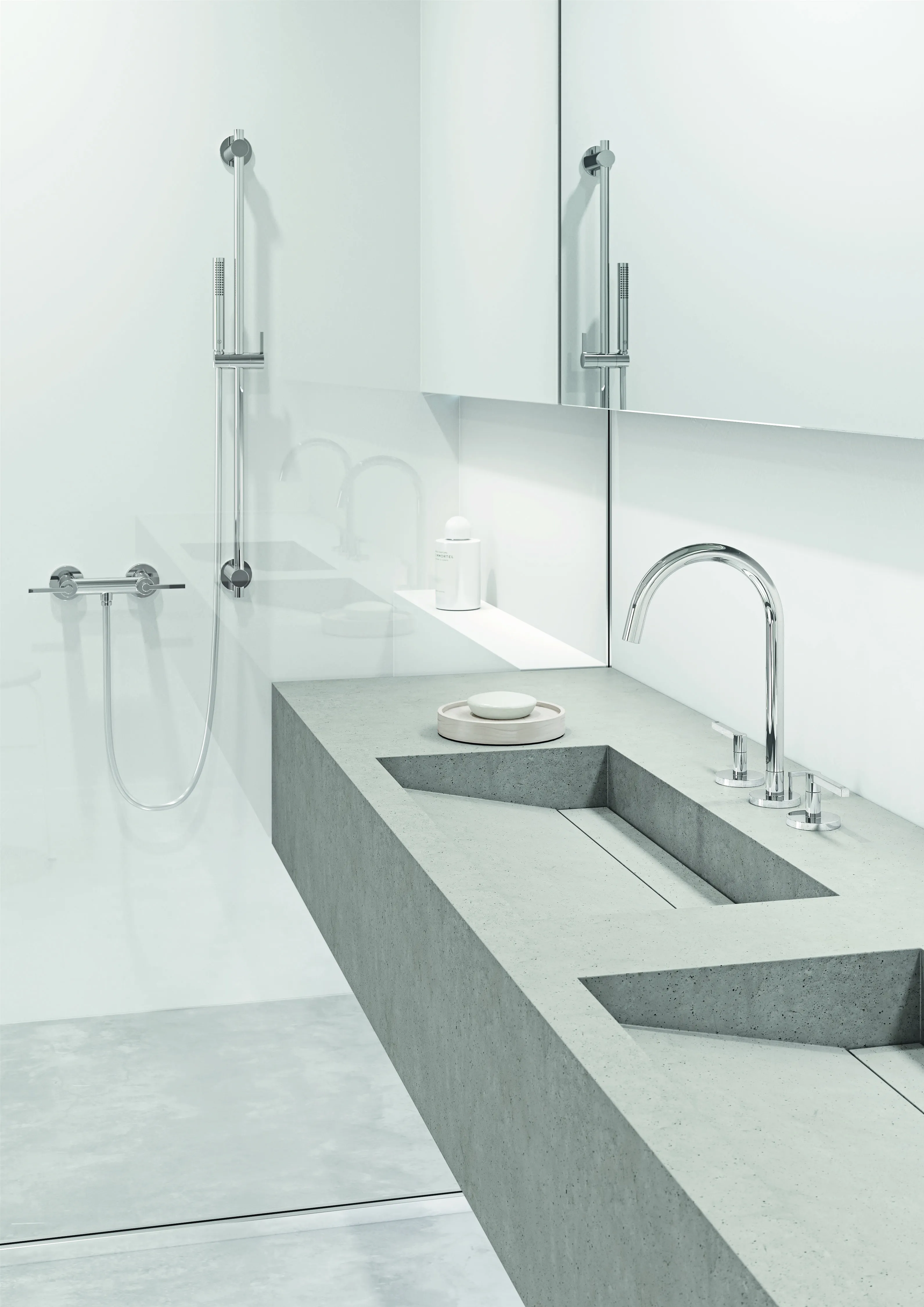 KLUDI NOVA FONTE Puristic Душевой гарнитур 1S, арт. 2084005-15 Коллекция KLUDI NOVA FONTE Puristic представляет минимализм в необыкновенно элегантной и утонченной форме, а геометрические и филигранные формы рычагов и отражателей подчеркивают ее красоту и грацию. В данной коллекции представлены смесители на умывальник трех видов: классическая высокая модель на одно отверстие, модель на три отверстия и модель настенного монтажа. Вы сможете выбрать тот смеситель, который больше всего подходит для вашего интерьера и типа санфаянса. Дополняют коллекцию смесители для ванны и душа настенного монтажа и душевые гарнитуры последовательно выполненные в данном стиле. Основным дизайнерским штрихом KLUDI NOVA FONTE Puristic являются утонченные литые рычаги и аккуратные плоские отражатели. Чтобы придать продуктам еще больше элегантности, обозначения теплой и холодной воды выполнены лазером, без применения классических цветов: синего и красного. Переключатель смесителя для ванны почти полностью встроен в излив, сохраняя последовательность его дизайна. В продуктах данной коллекции применены ламинарные аэраторы типа PCA, которые независимо от давления воды обеспечивают ее расход на постоянном уровне. Ламинарный аэратор обеспечивает бесшумную и прозрачную струю воды без брызг. Все смесители коллекции KLUDI NOVA FONTE Puristic выполнены на собственных европейских заводах из высококачественной латуни от европейских поставщиков, подвержены двойной гальванизации и прошли тщательный контроль качества.