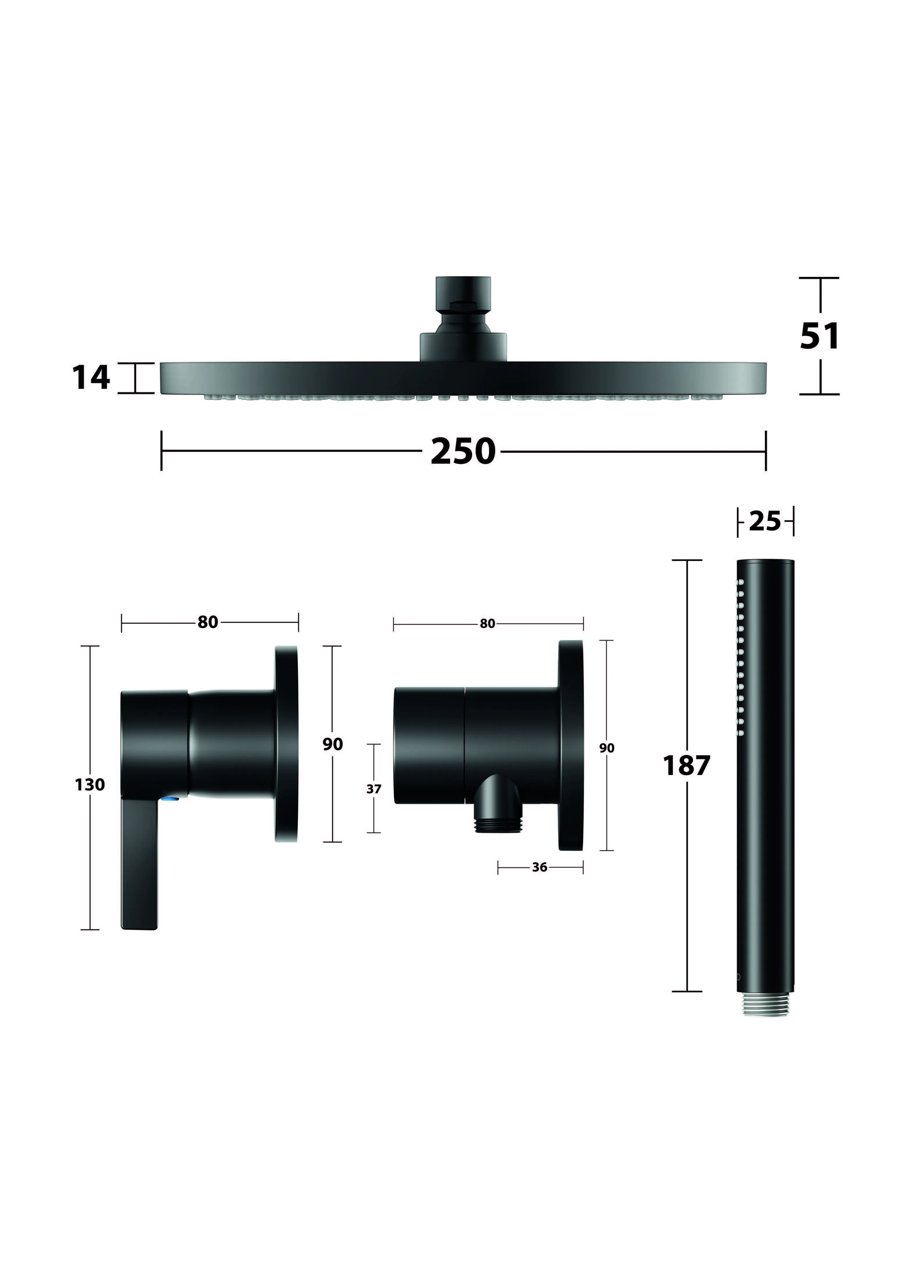 Душевой Kомплект № 3 Keuco IXMO, 59603370001, на 2 потребителя, с круглыми розетками, черный матовый