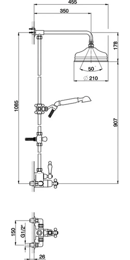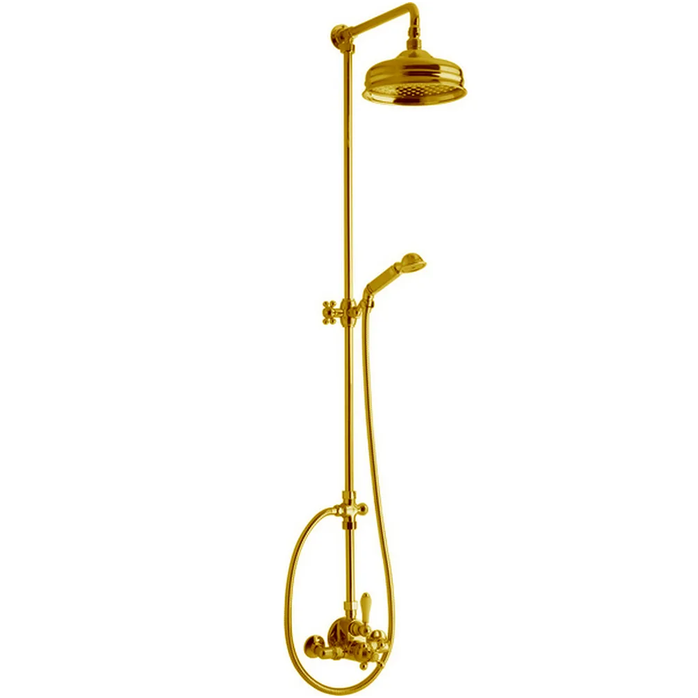 Душевой комплект Cisal Arcana термостатический смеситель, стойка с верхним душем, лейка+шланг, золото AC00406024