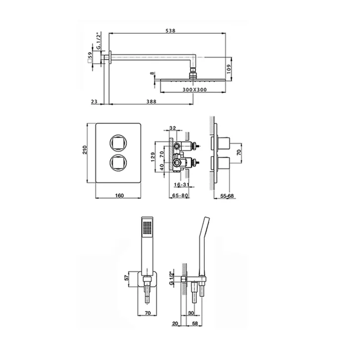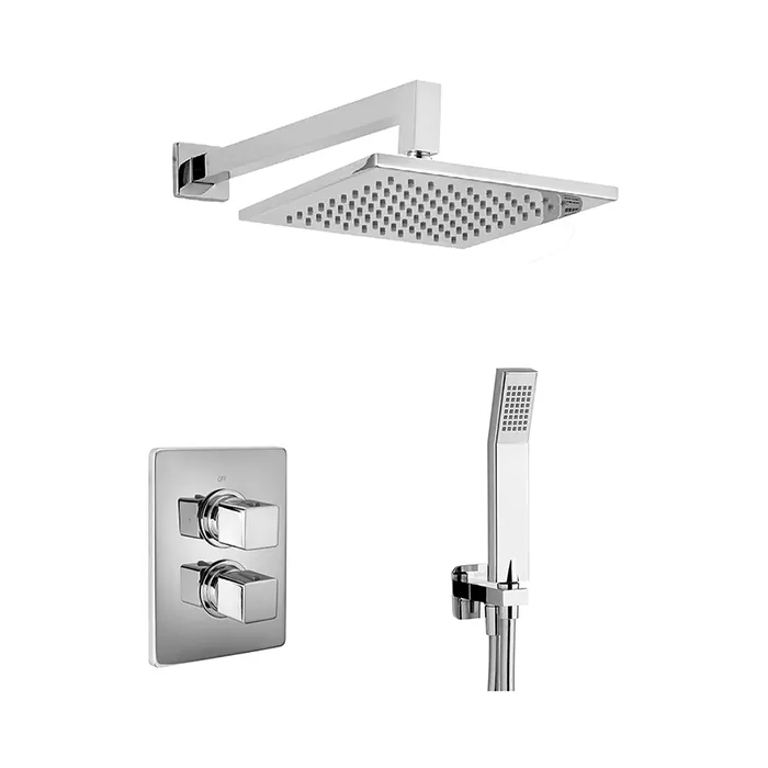 Душевой комплект Cisal Cubic однорычажный смеситель с переключателем, верхний душ 300х300мм., ручной душ с держ. и подводом воды, хром CU0KT01021