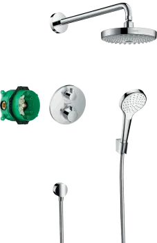 состоит из: верхний душ, ручной душ, термостат для душа, скрытая часть, держатель верхнего душа, держатель для душа, настенный вывод, шланг для душа