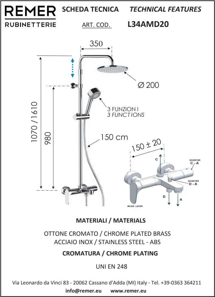 Душевая система Remer Class Line с изливом хром (CR) L34AMD20