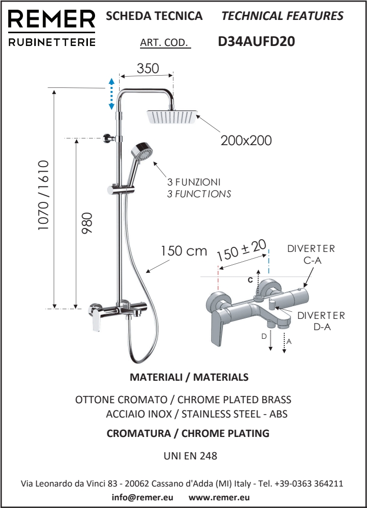 _Code D 34 AUFD25 with 25x25 cm shower head (357UFD25X)_Code D 34 AUFD30 with 30x30 cm shower head (357UFD30X)