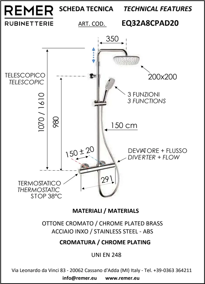 ELEGANCE thermostatic mixers collections is designed and manufactured by Remer Rubinetterie with great attention to detail, using high quality materials and advanced technologies, to always offer the best of comfort, safety and relaxation.