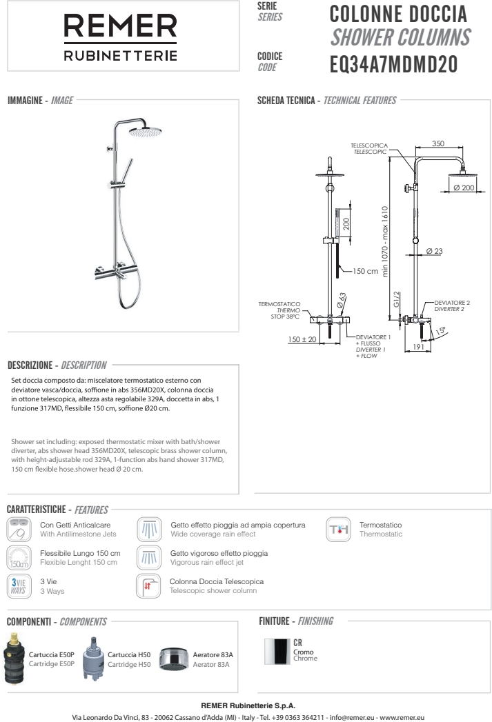 ELEGANCE thermostatic mixers collections is designed and manufactured by Remer Rubinetterie with great attention to detail, using high quality materials and advanced technologies, to always offer the best of comfort, safety and relaxation.