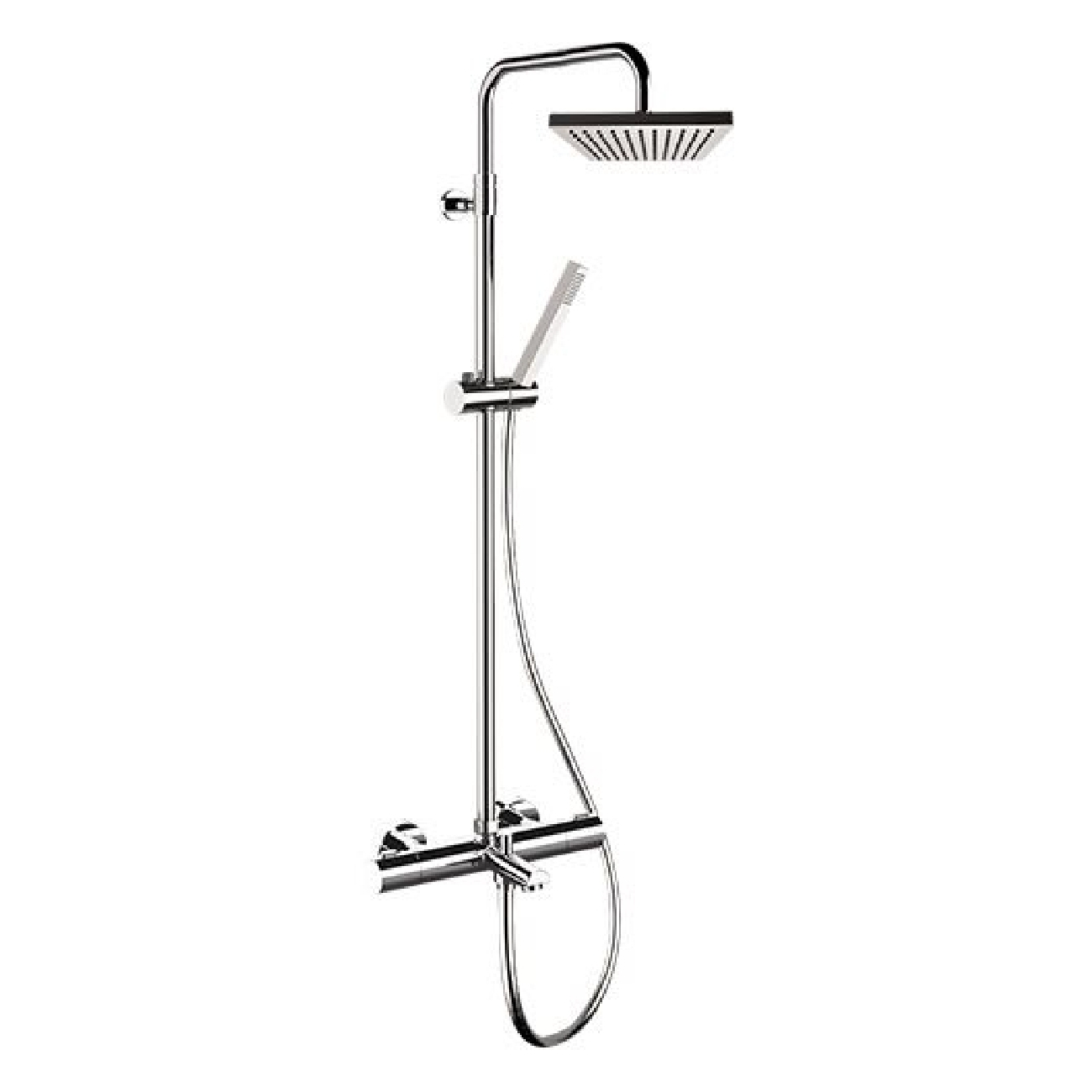 1-function square handshower in c.p. abs with anti-limescale jets (317SD), 150 cm flexible hose.Also available